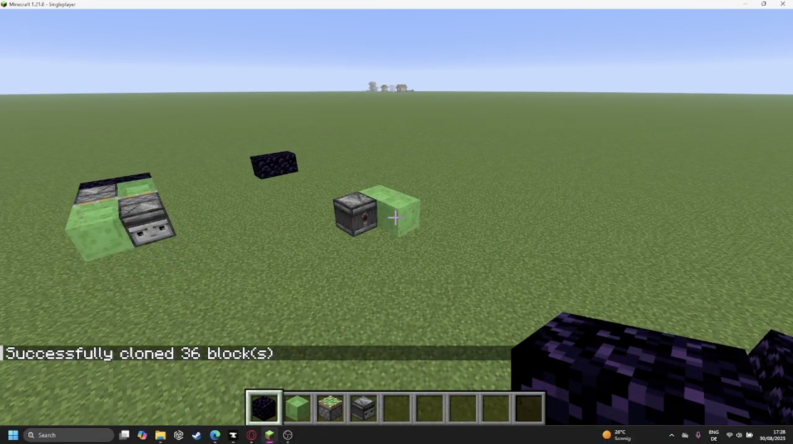 /clone <x1> <y1> <z1> <x2> <y2> <z2> <x> <y> <z>where x1 y1 z1 are the starting obsidian corner coordinates, x2 y2 z2 are the ending obsidian corner coordinates, and x y z are the clone destination coordinates.Activate the initial flying machine to ensure it operates correctly.