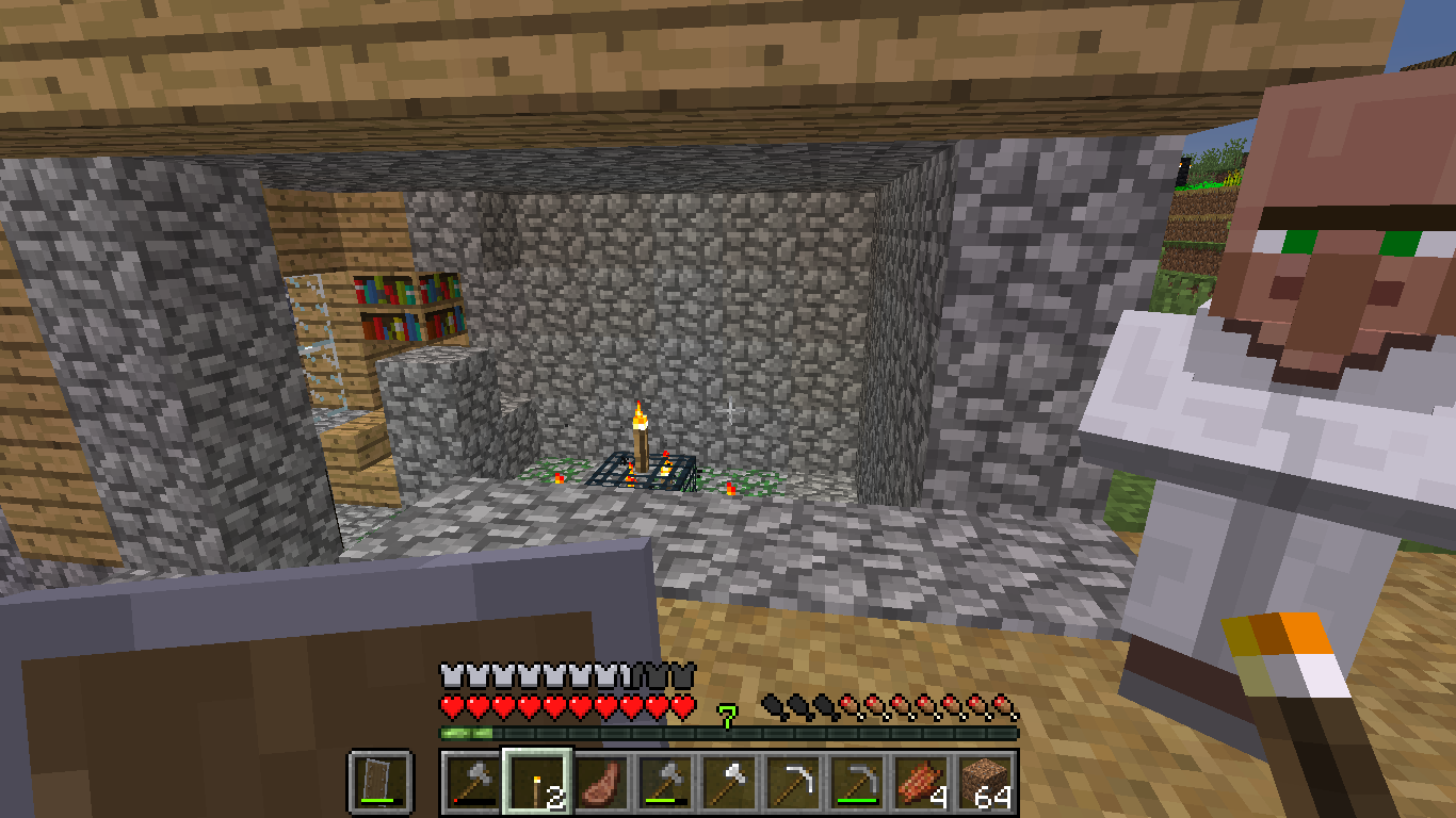 I was exploring a village when I found this dungeon inside a library with no chests but had zombies spawning and terrorizing the villagers.