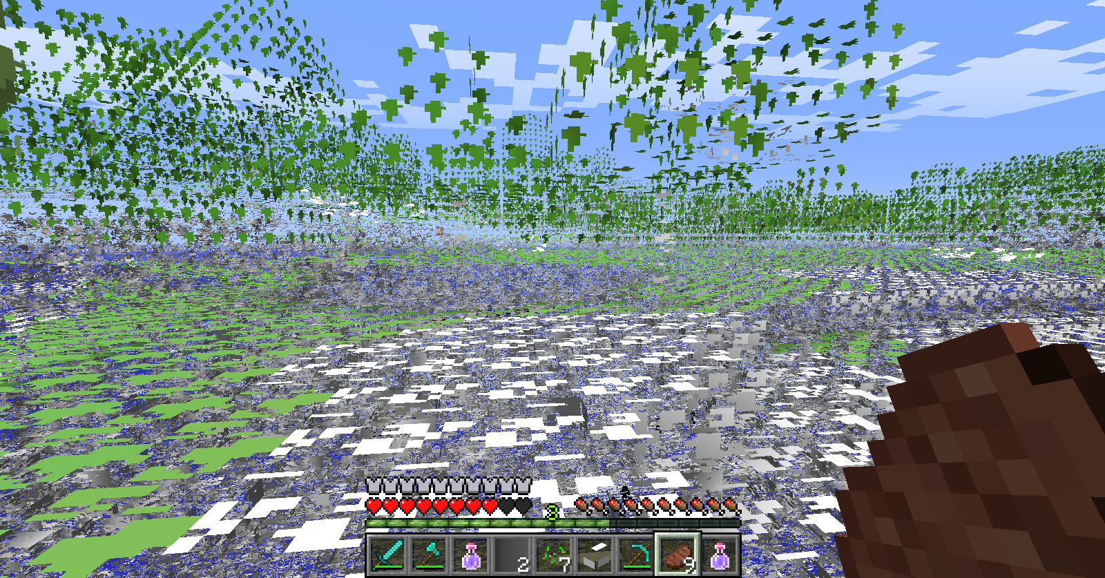 Ever since the 1.5 update Minecraft has started the weirdest glitch as seen in the picture. It got worse after 1.5.1 which I thought would fix it. I love this game and don't want to have to stop playing, but its getting to the point where its happening within a five minute period repeatedly and it makes it to hard to play the game