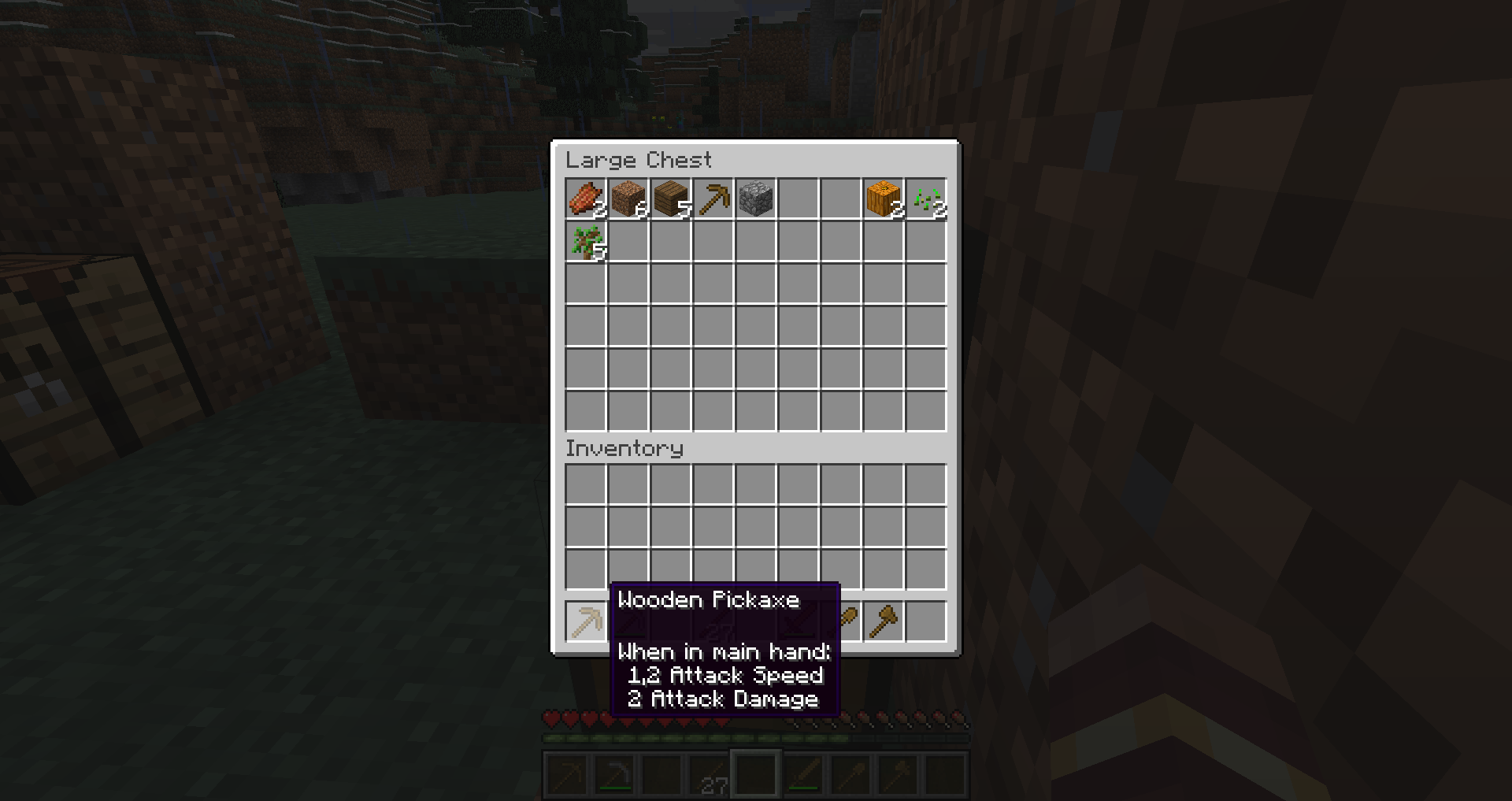 Image shows what happens to a wooden pickaxe after shift-clicking to move it to a chest. It just duplicated the tool.