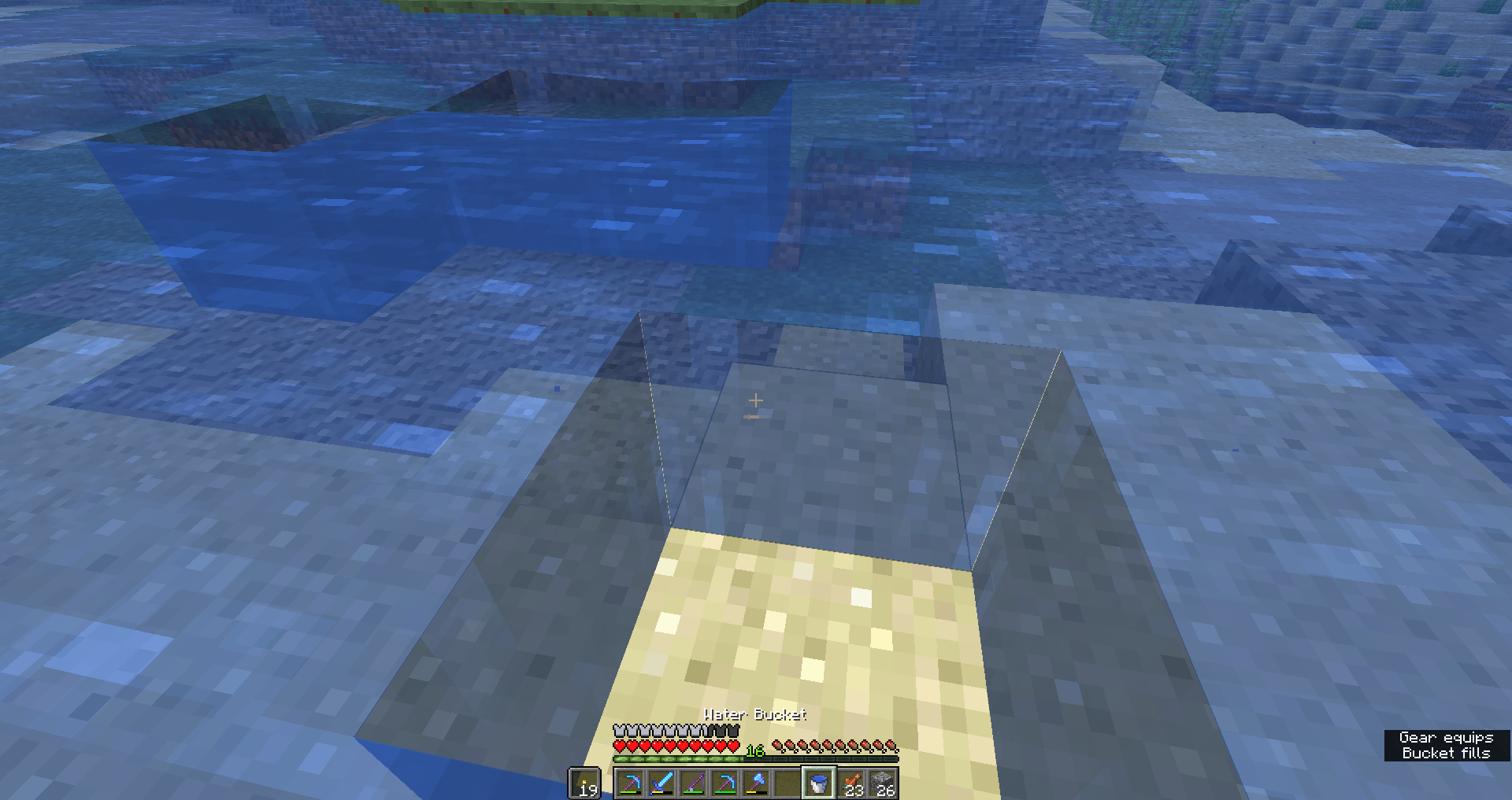 Also to note is that you cannot empty a bucket in an ocean/river if the depth is more than a single block.