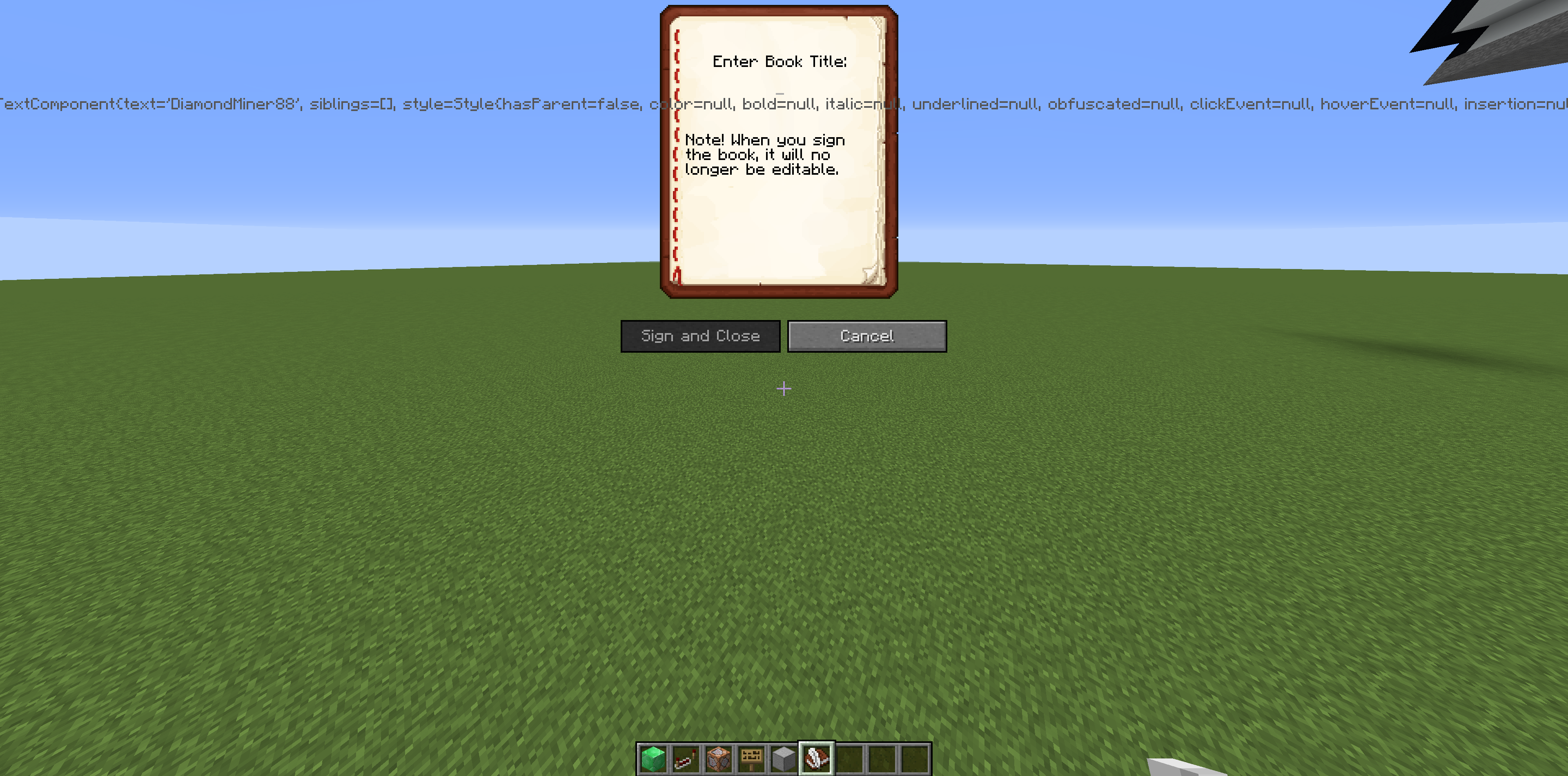 When i sign a book it requests a title but also shows some kind of JSON code Look at image.