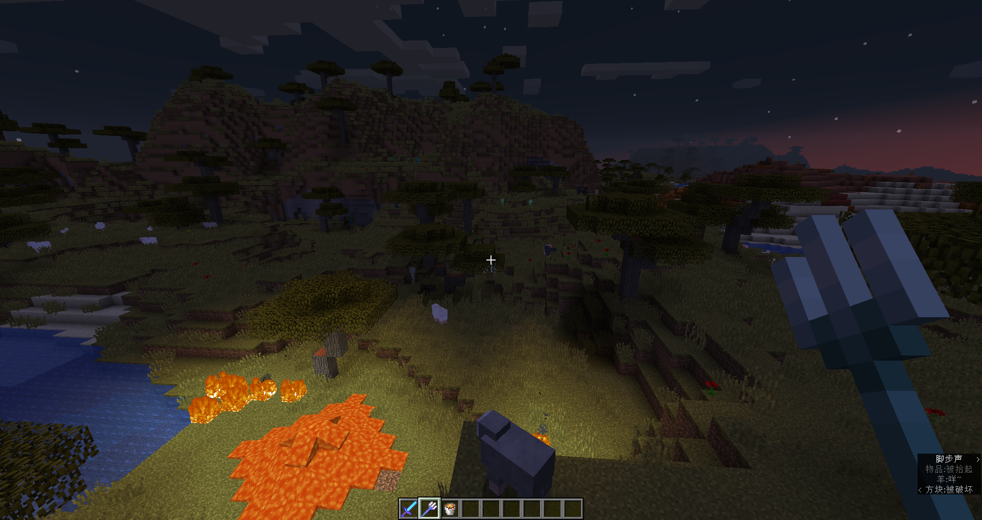 When I threw a trident and the Trident was flying, it was found that the surrounding creatures were all painted with white material.