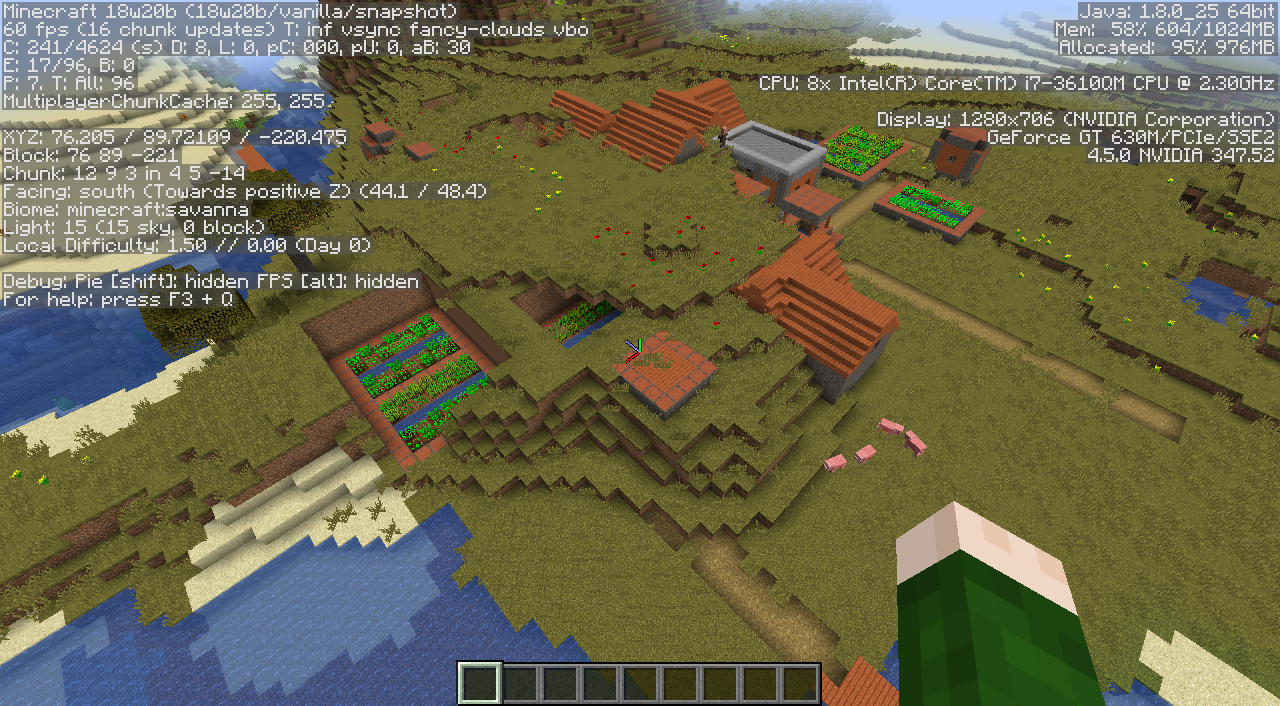 The screenshots below document changes in two villages on seed -1165132418 between snapshot versions 18w19b and 18w20b. The main affects consist of buildings and structures like farms and torches being placed either partially buried like the watchtower in the desert village or partially buried at the bottom of a pit like the library in the desert village. Both have farms that generated almost completely underground.