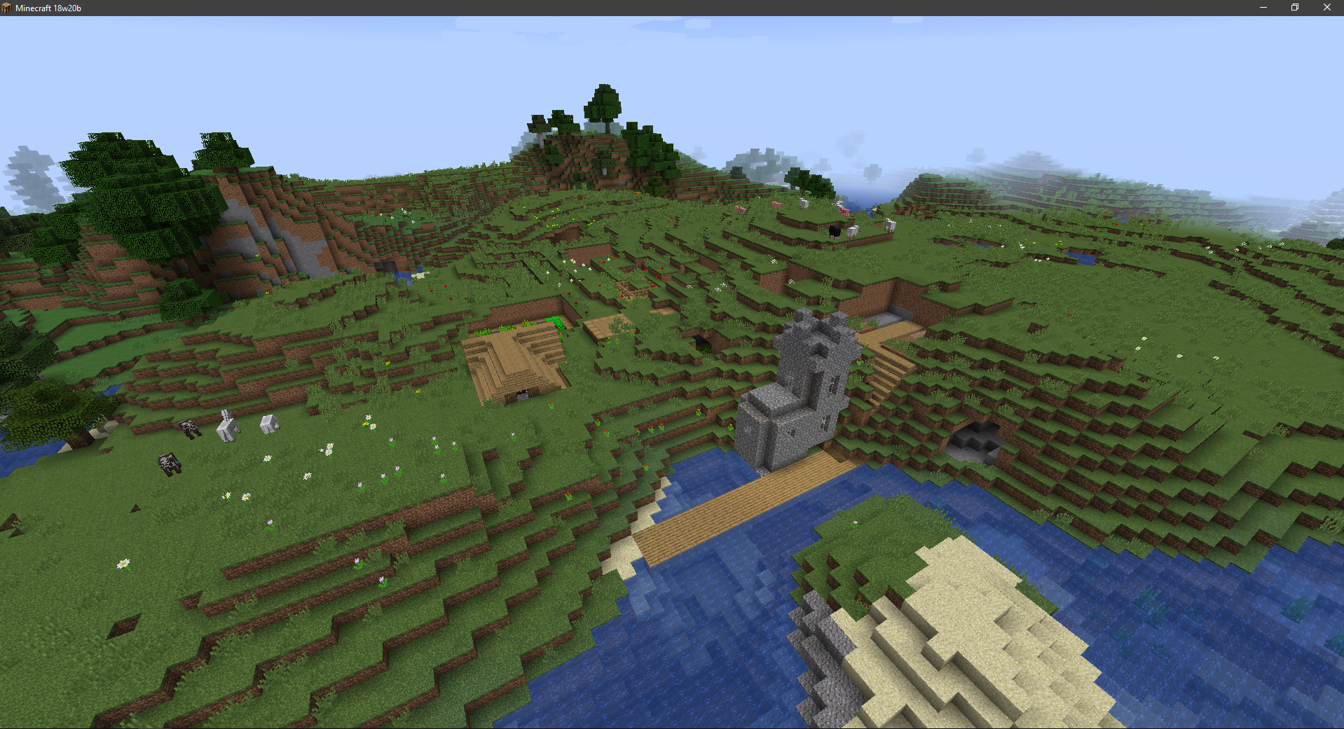 I have attached a couple of screenshots with better views of the world / structure gen present in 18w20b. This is able to be replicated.
