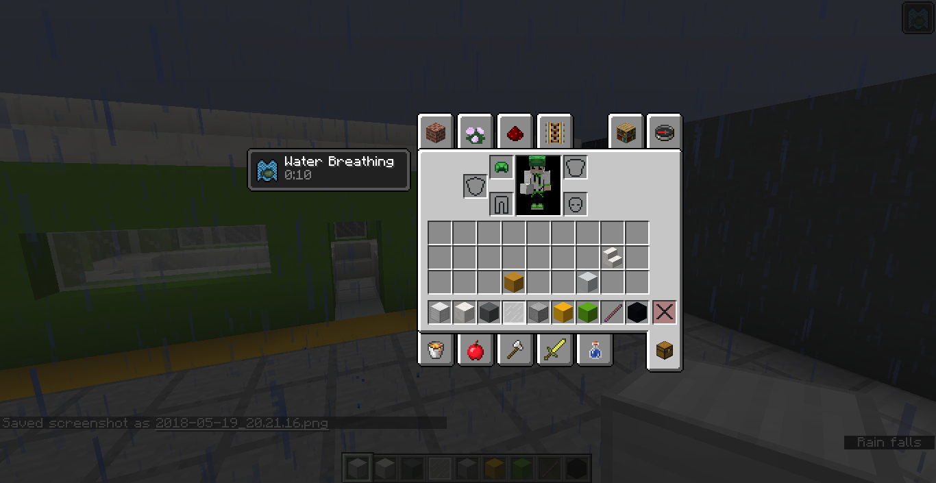 This is a very funny bug. The displays for where the armour should go are in the wrong places in the creative mode inventory. So, for example, the helmet goes into the boots slot. I have attached a screenshot.