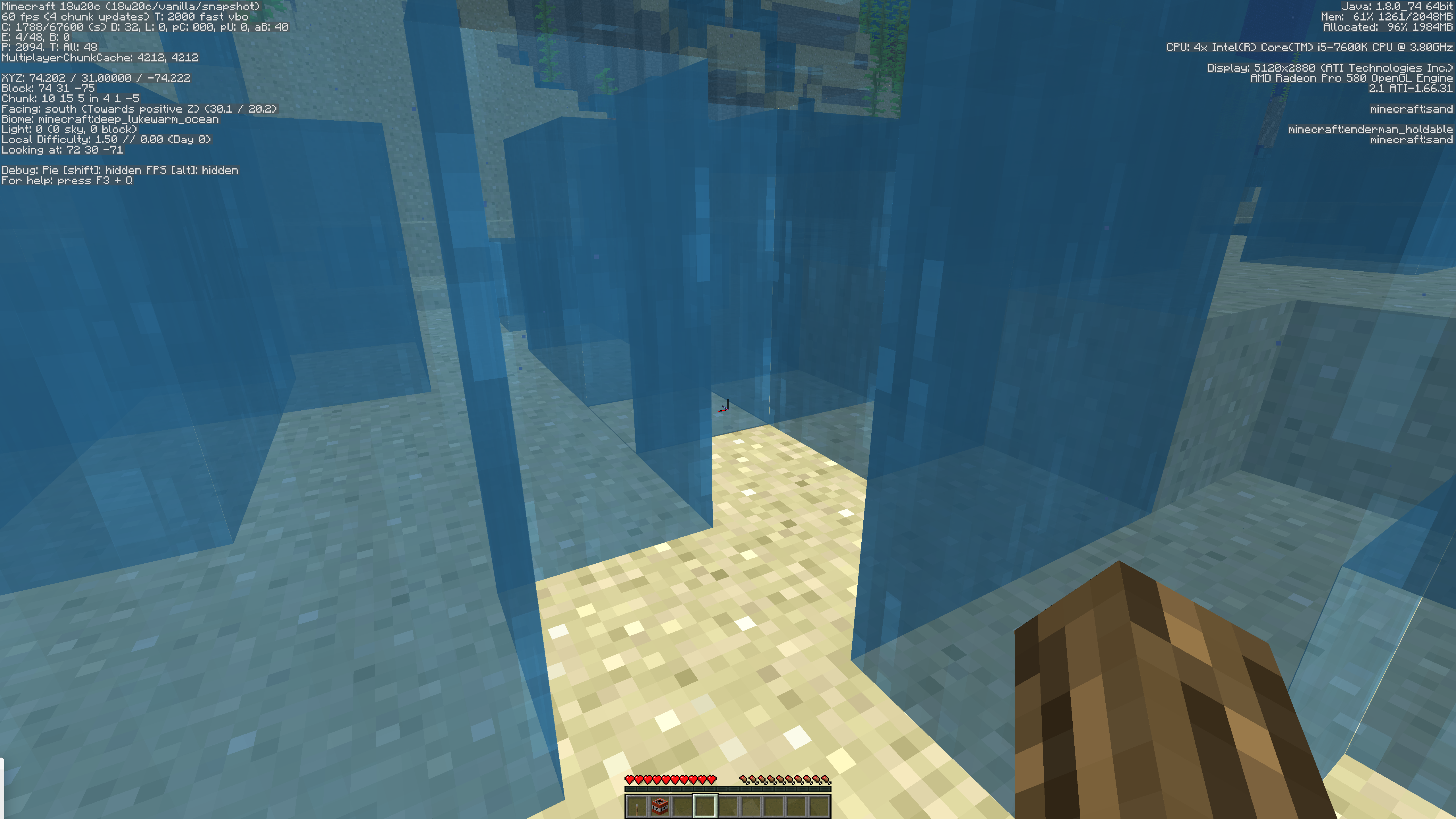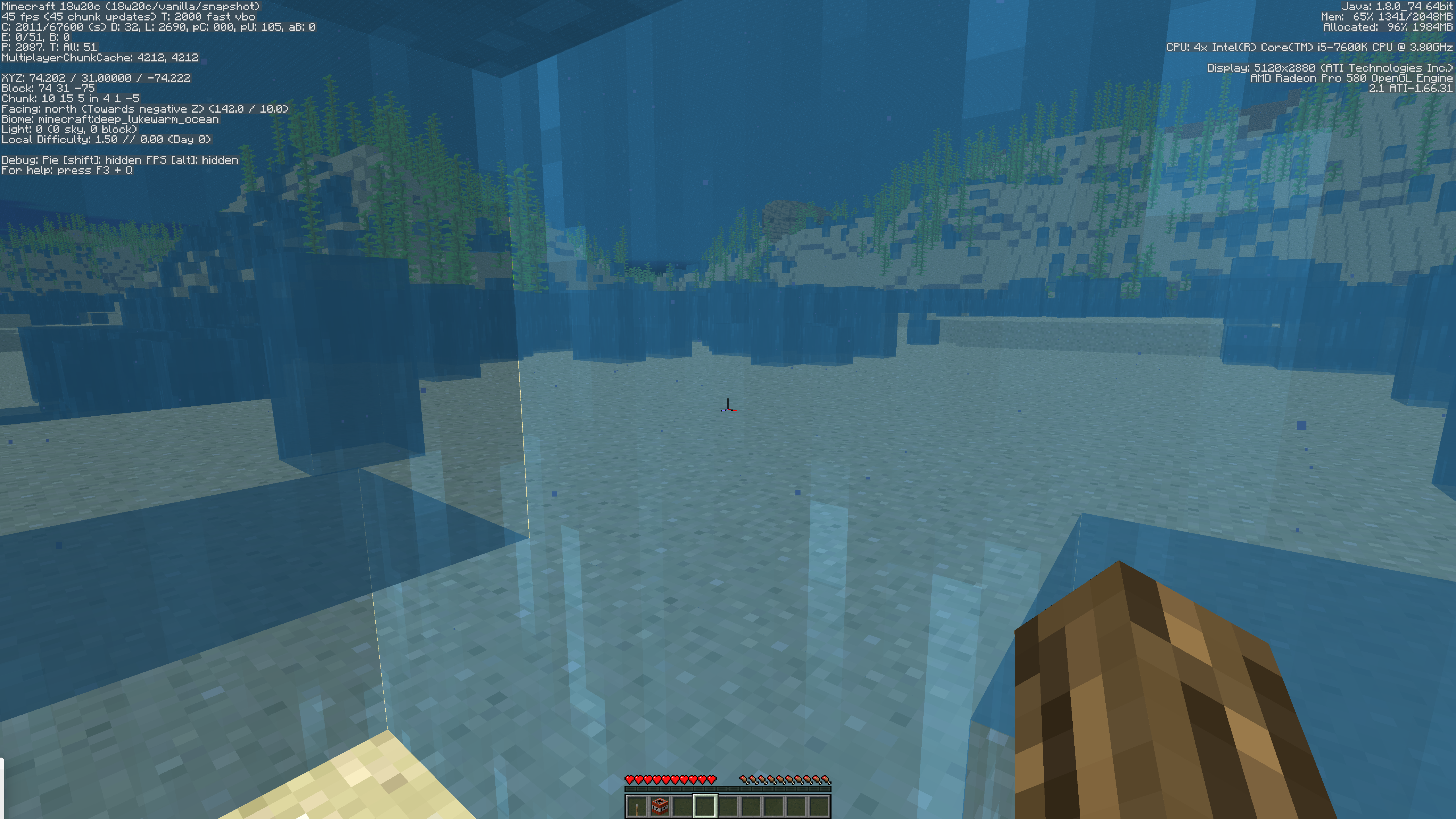 In the minecraft:deep_lukewarm_ocean biome, there are random air pockets at the bottom of the water that you can breathe from.