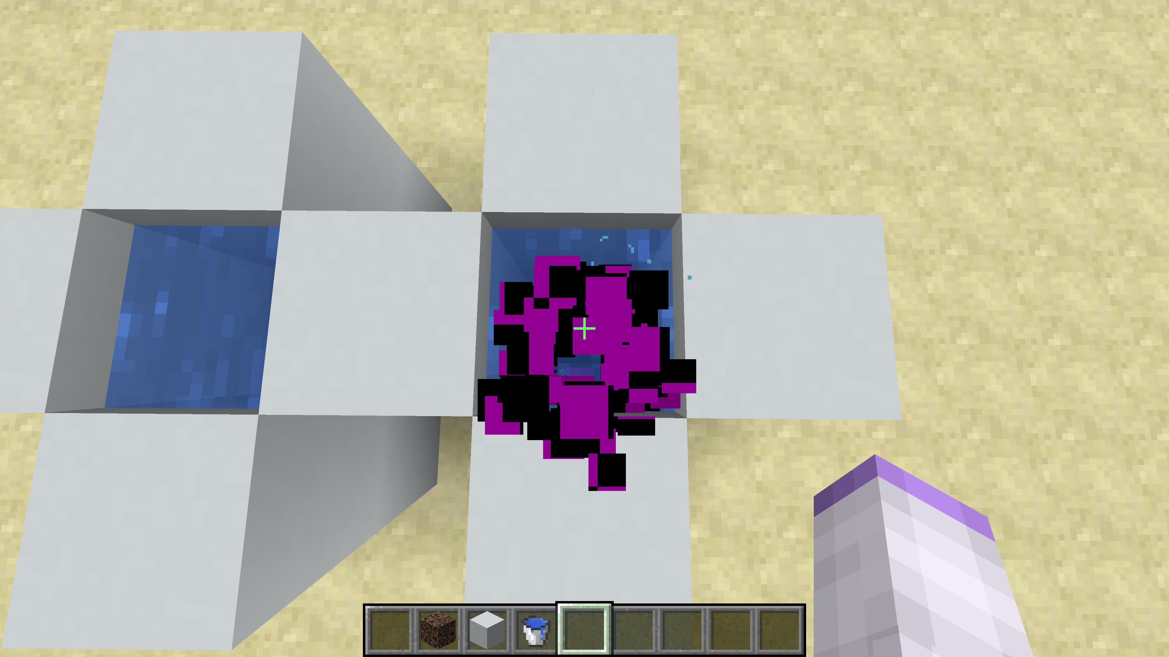If player drop from high and land on the side of a bubble column (but not in the water), the effect is shown, but the texture has a error.