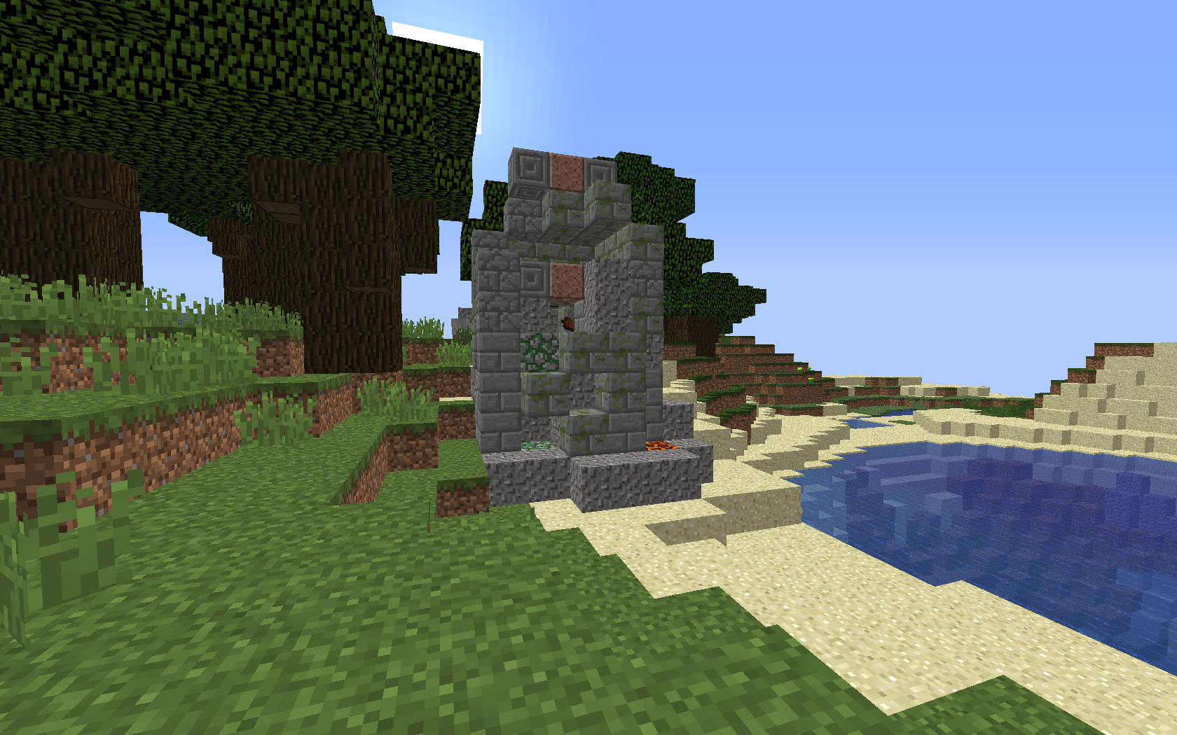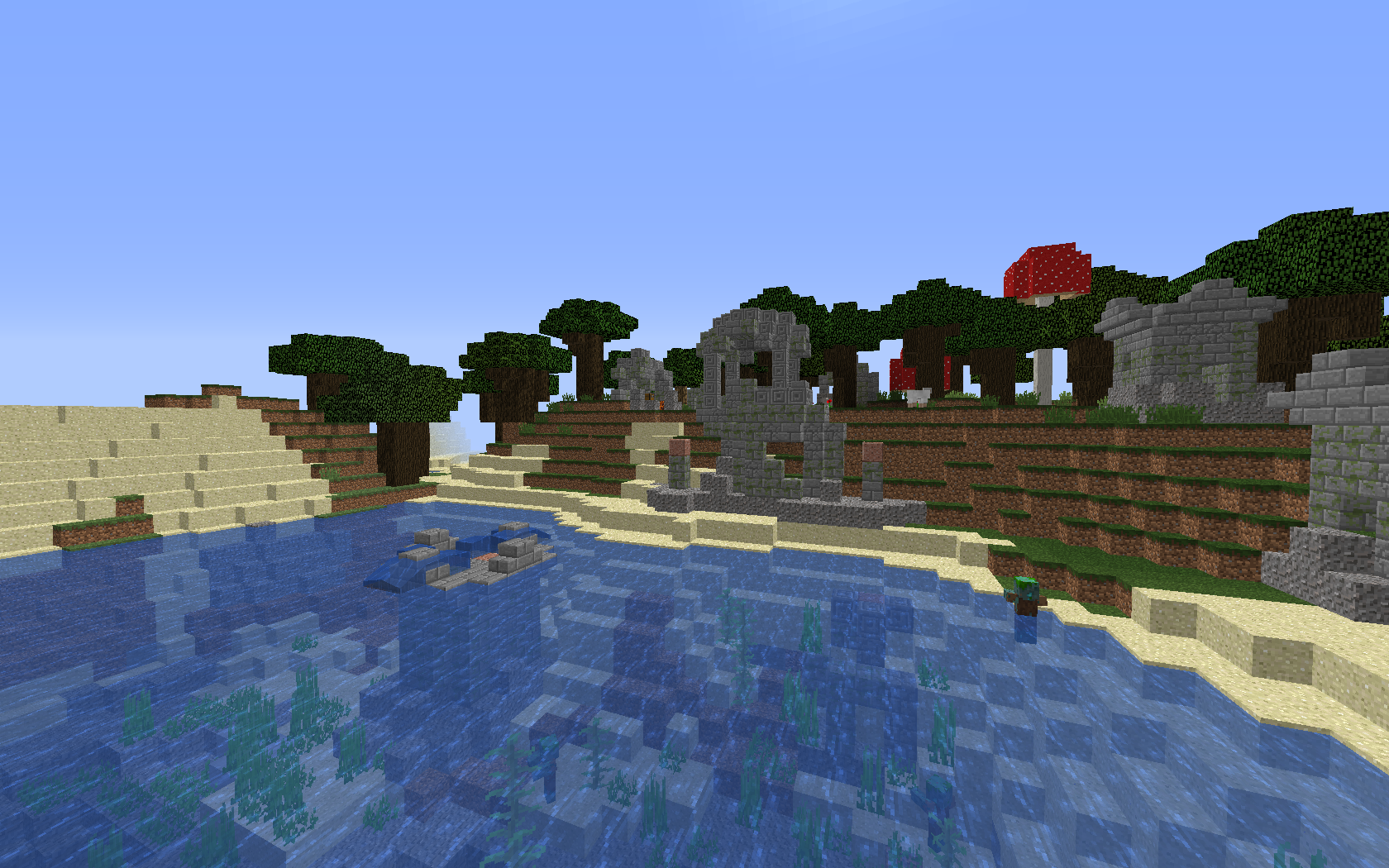 I loaded up new minecraft world (made in 18w21a), and first thing that i saw when i spawned was ruins. But, they were on land. I am not sure if this is a bug or not, but if it is, try to fix it please.