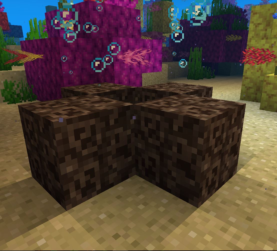 Using magma block or soul sand to create a cross shape underwater, you can break the central block of the cross after the bubble columns appear. When entering the central area surround by bubble columns, you can hear the sound of leaving water and breath underwater forever.