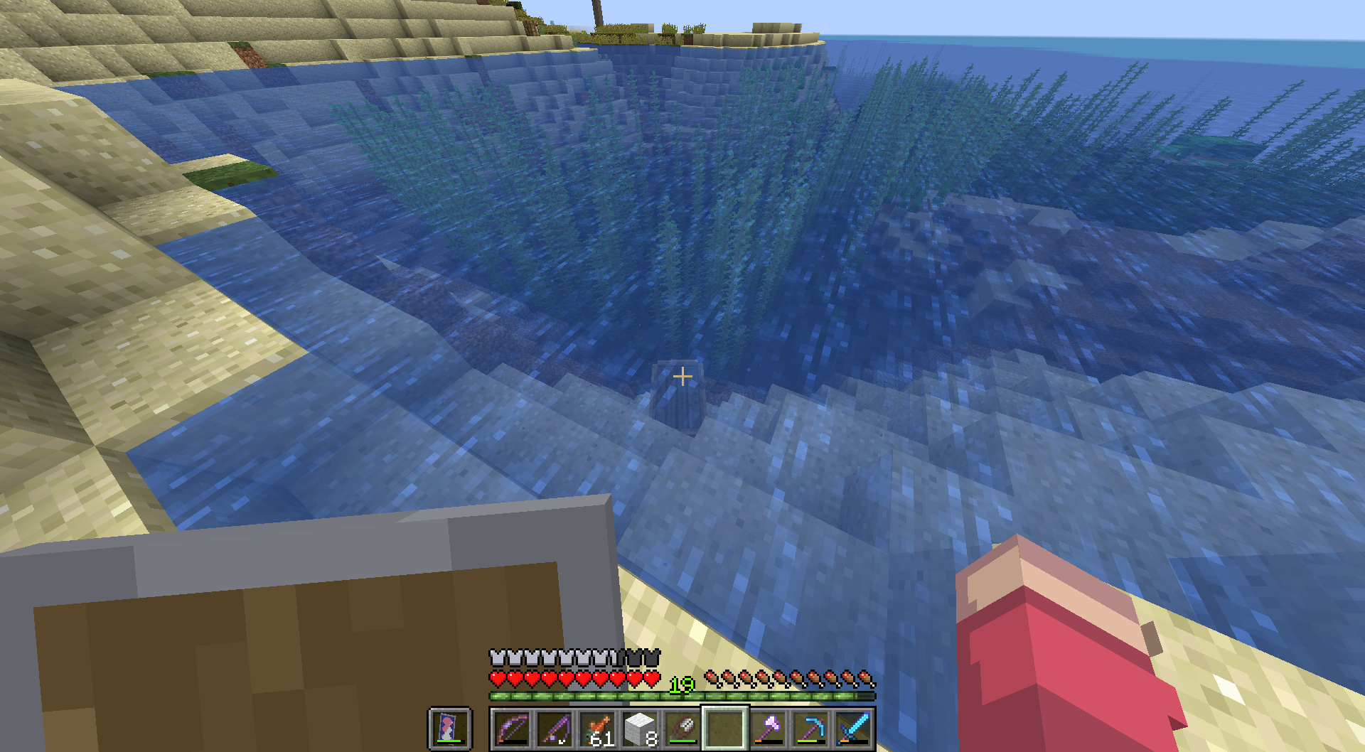 Placing on solid block --> swim.