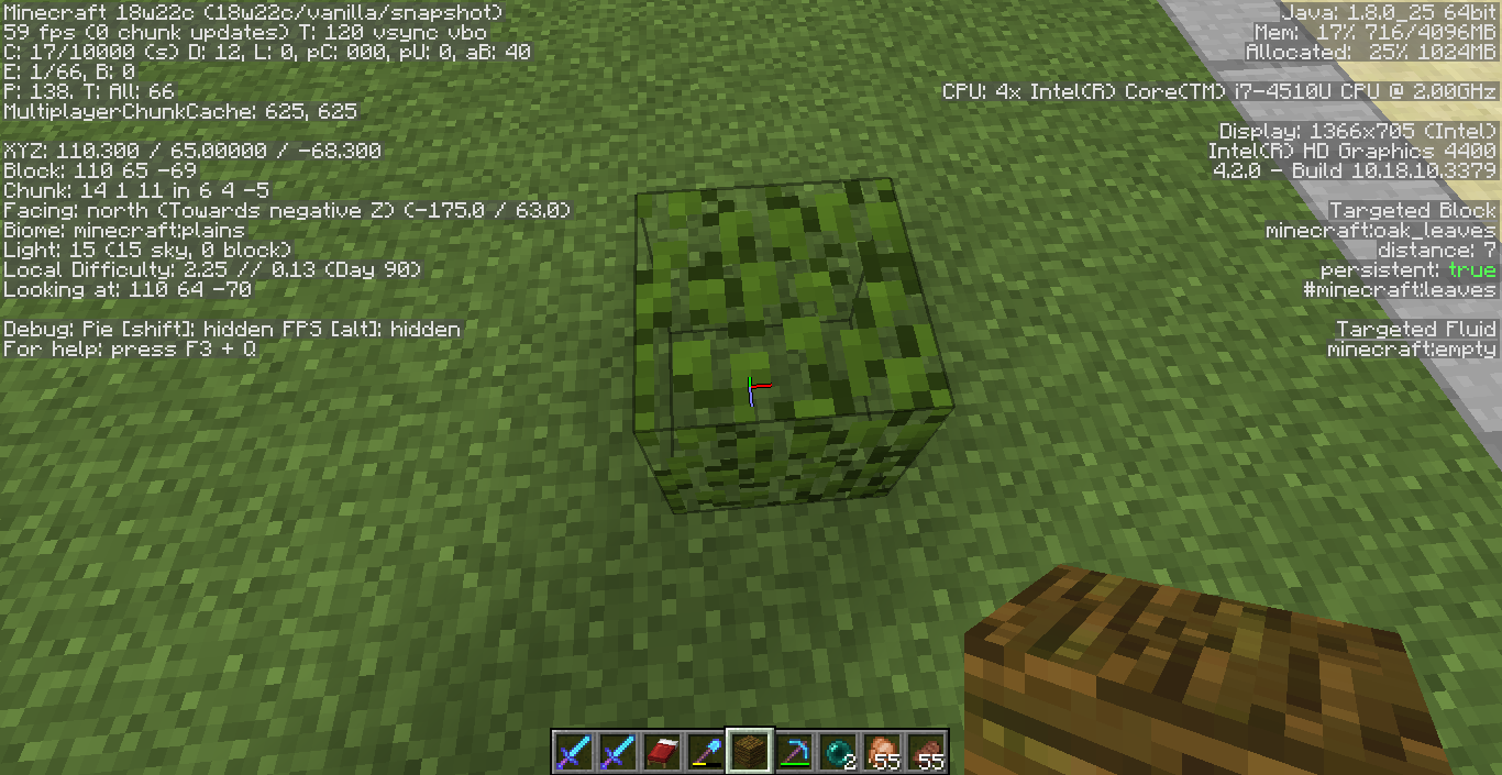 Decay status of leaves that are placed by hand change when chunks are unloaded then loaded again. The leaf block starts as persistent:true then changes to false when chunks are unloaded then loaded.