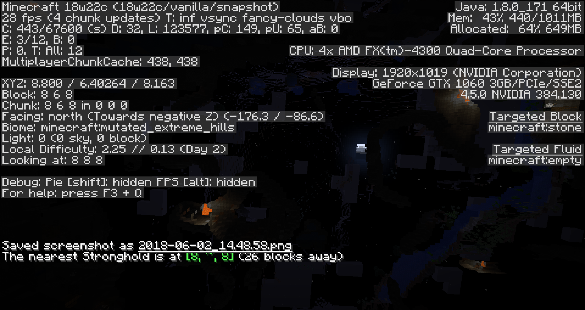When throwing Eyes of Ender/Ender Eyes/whatever to locate a Stronghold in creative mode, I noticed that the location they indicated the Stronghold was at (where they floated down) had no structures, caves or similar at all, and the nearest structures like those were a mineshaft and a dungeon. I then tried /locate, which indicated the same. After looking around the general 500-block area in spectator mode, I hadn't found anything.