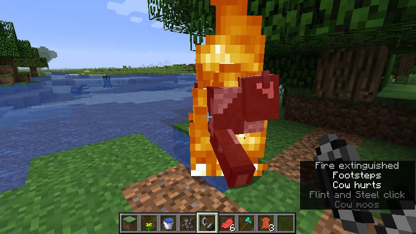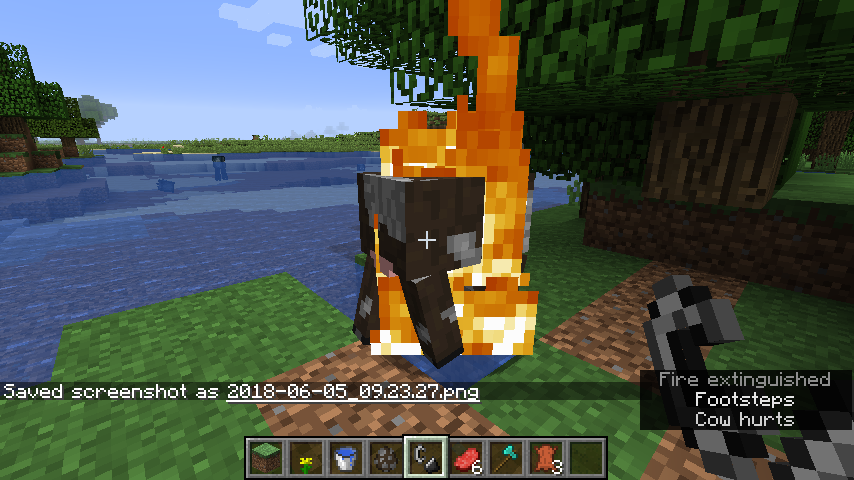 Notice how the cow will rotate rapidly above a 1*1 block of water instead of going into the larger pond like Screenshot 2 & 3.