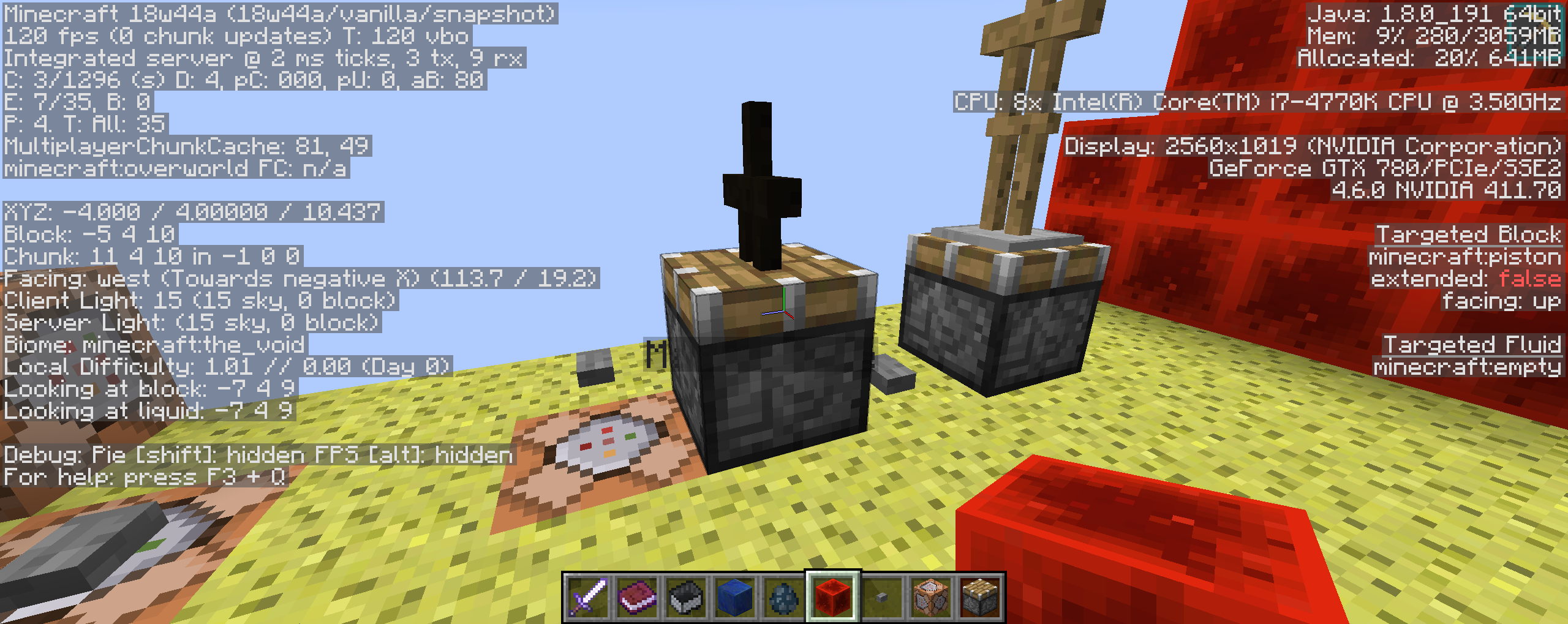 The server performance is roughly the same, compared to 18w43c and 1.13.2. The client performance has not changed much (when it comes to light updates), there are still huge framerate drops and stuttering, but at least for now I think it's safe to say that the pistons and slime blocks transparency changes probably wouldn't affect farms, flying machines, technical builds, etc.