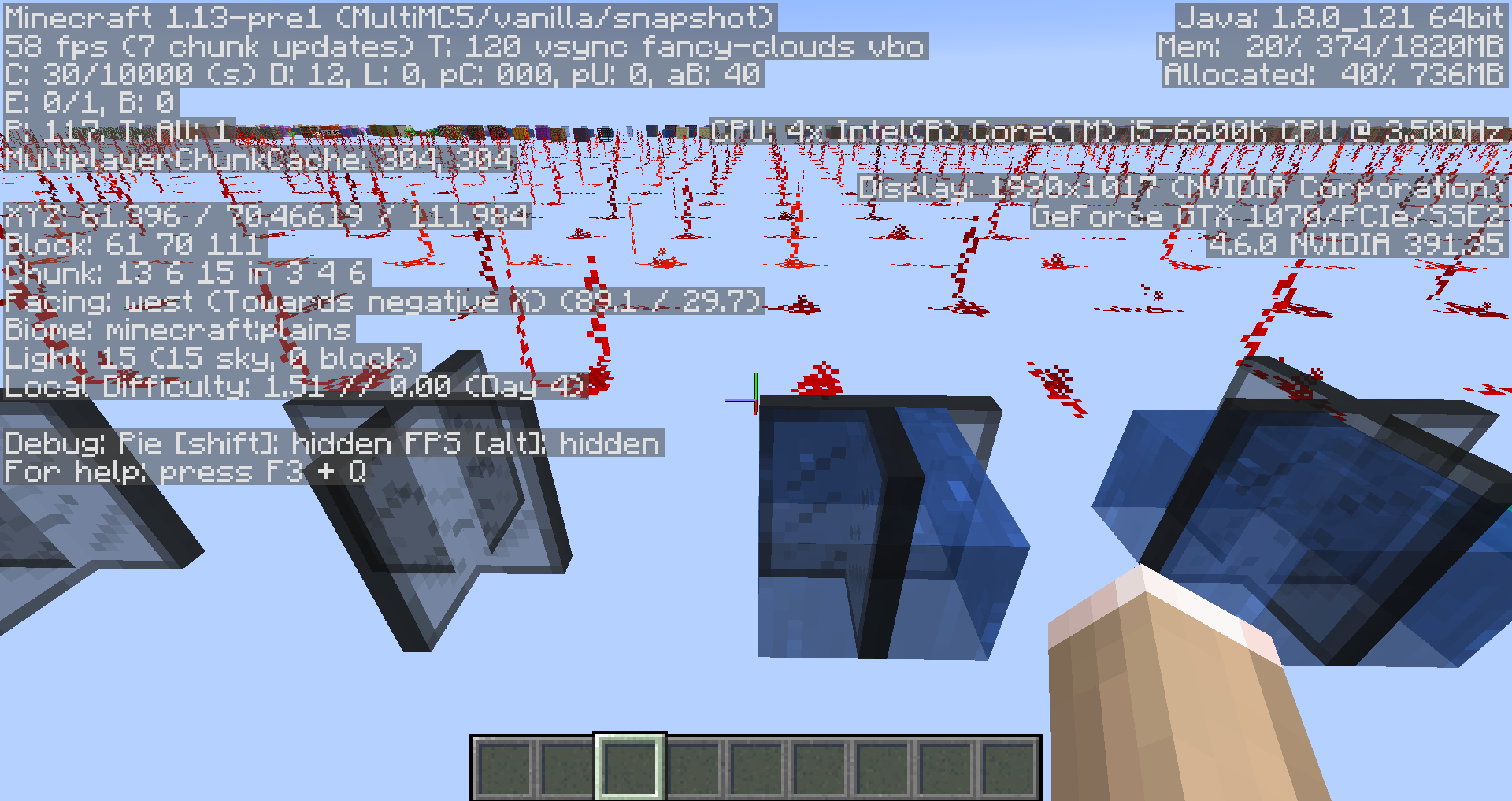 When moving around and looking from different angles a stained glass pane which is located inside a water block, it looks weird and glitches . This doesn't happen with regular glass pane.