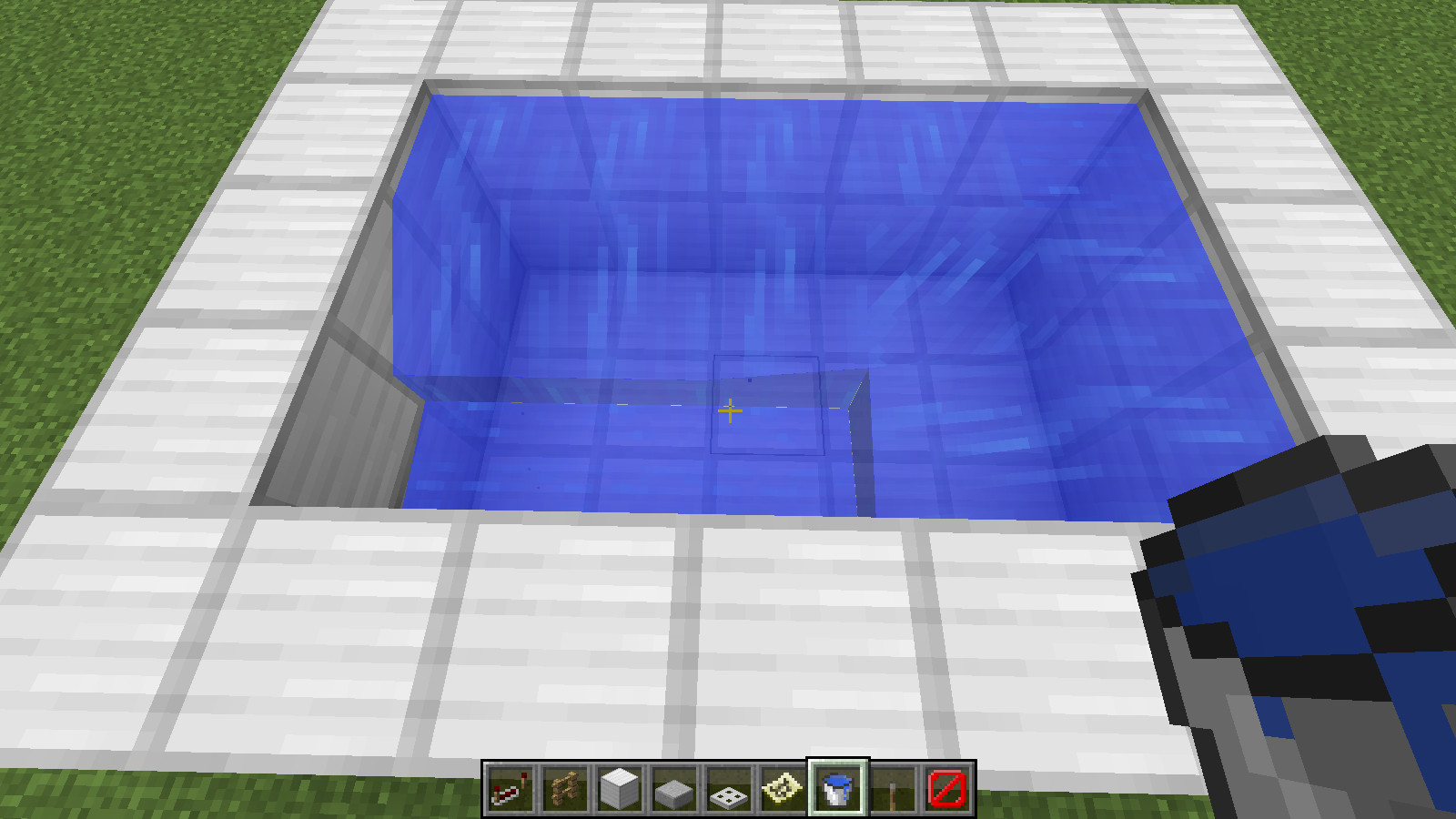 In 1.13 releases, water placed above water won't flow. Also, it will not form infinite water springs. In order to fill in the entire pool, you must click on every wall, or place solid blocks under water to get it to flow.
