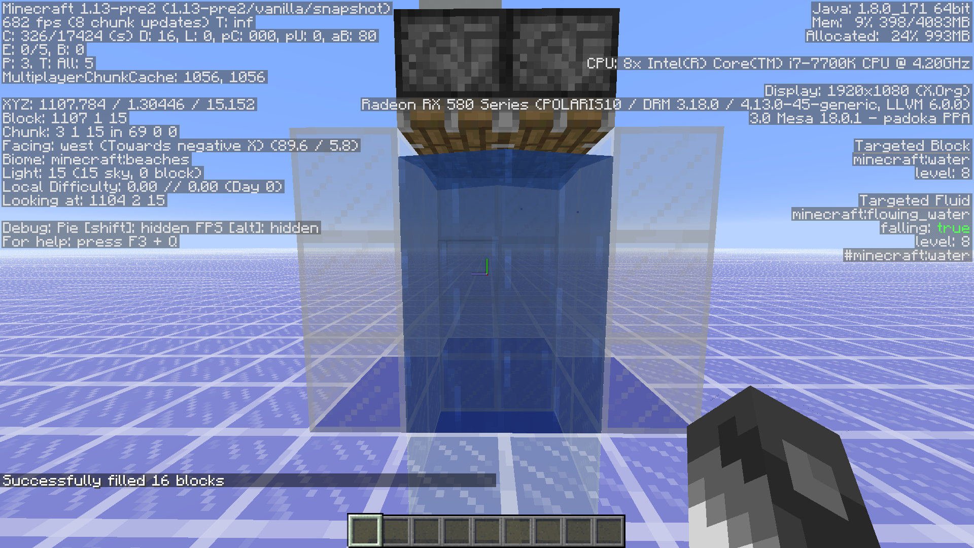 The Targeted Fluid of a water block is changed to flowing_water and falling to true if a player places a water block on top of it. Easy to recreate by making a 3 tall column of blocks and placing 3 water against it from the floor up. then remove the top water block and all of the water is deleted.