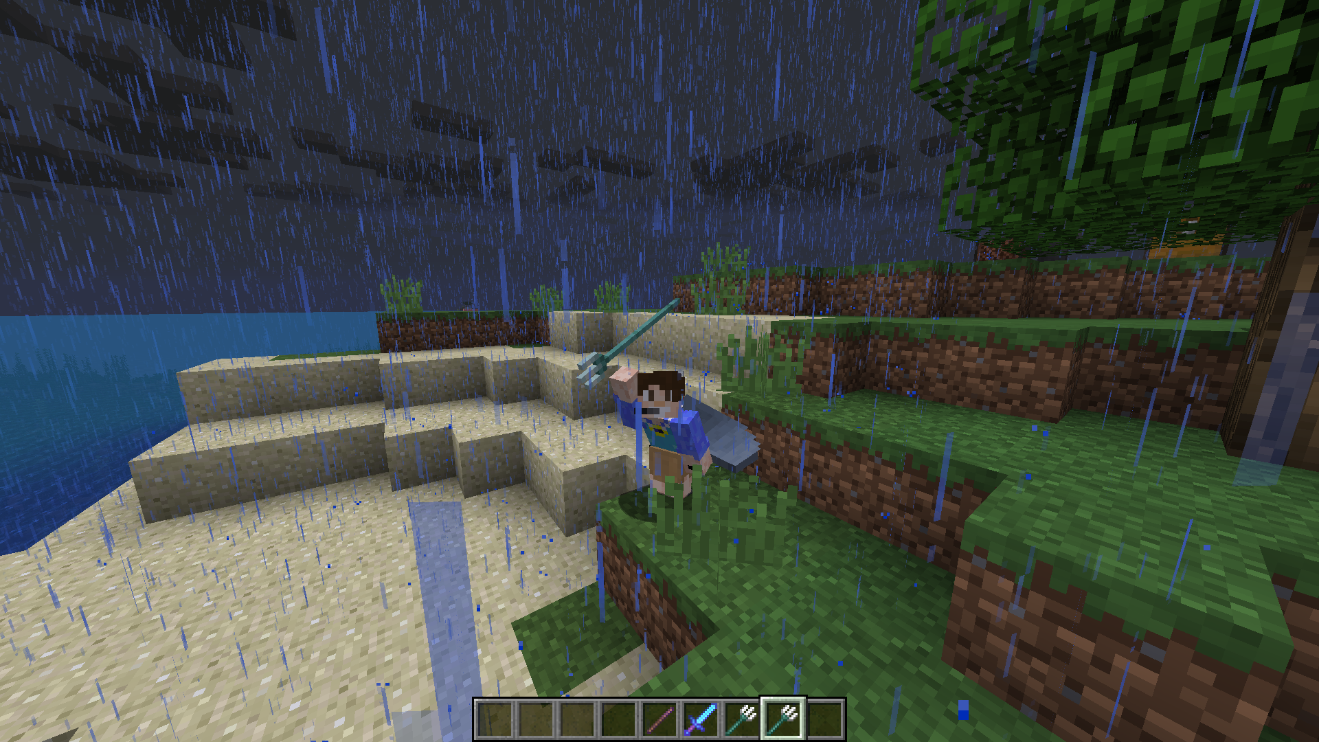 In version 1.13-pre2 when crouching with a bow pulled out or a trident in throwing position the placement of the item is incorrect, ether floating or high on the arm. Screenshots below.