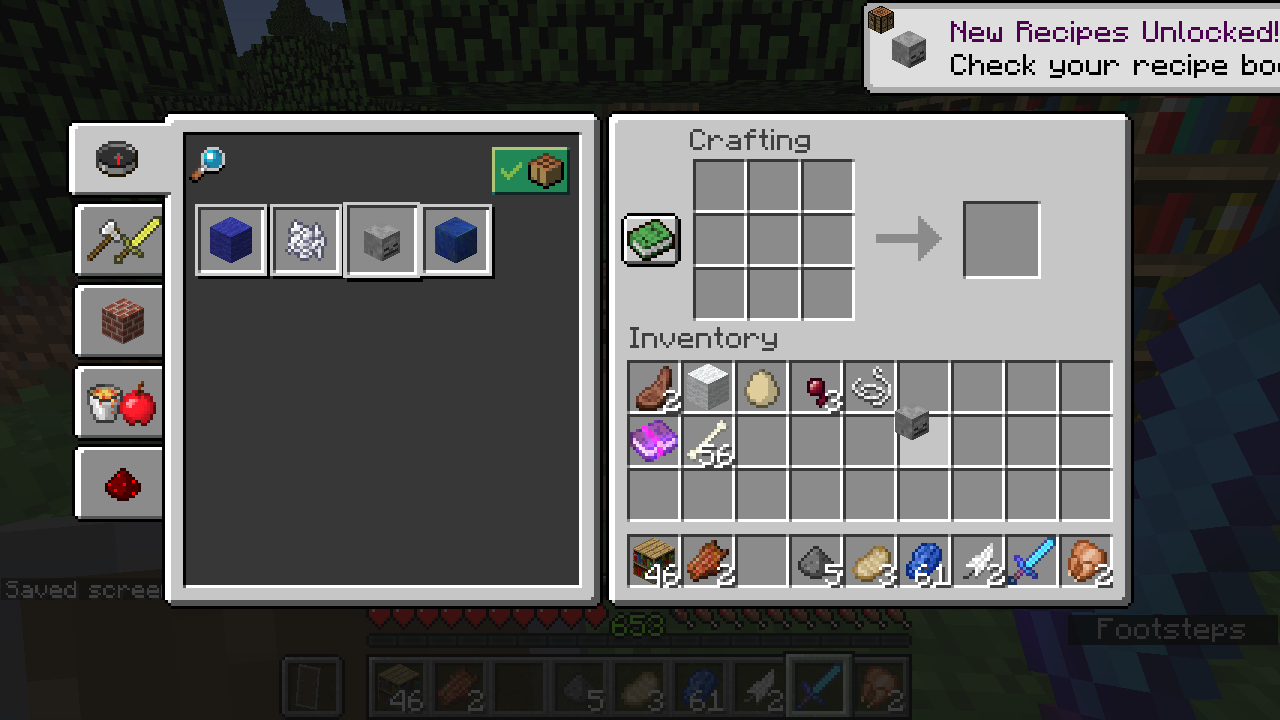 When experimenting with datapacks, I found that custom crafting and smelting recipes do not appear in the recipe book until after you use them for the first time. The attached datapack, Skulls.zip, has crafting recipes for skeleton skulls, wither skulls, zombie heads, and creeper heads. They all work, however, the recipes do not appear in any recipe book until after they have been used for the first time. I've taken screenshots testing this in Survival Mode with the Skeleton and Wither skull recipes.