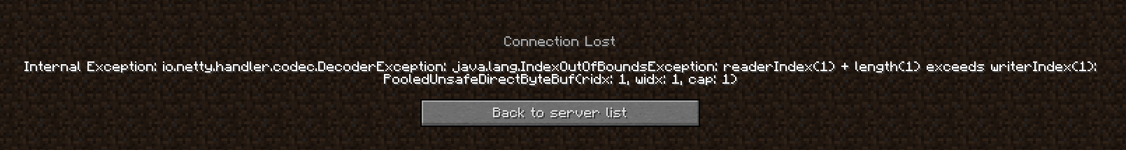 If there is a sufficient amount of players/entities, you will be kicked from the server with a message (attached).