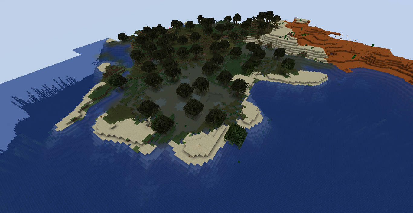 I found a Swamp Hills with a beach bordering around it. The seed is -4165536068241575960 and the coordinates are 1491 64 687.