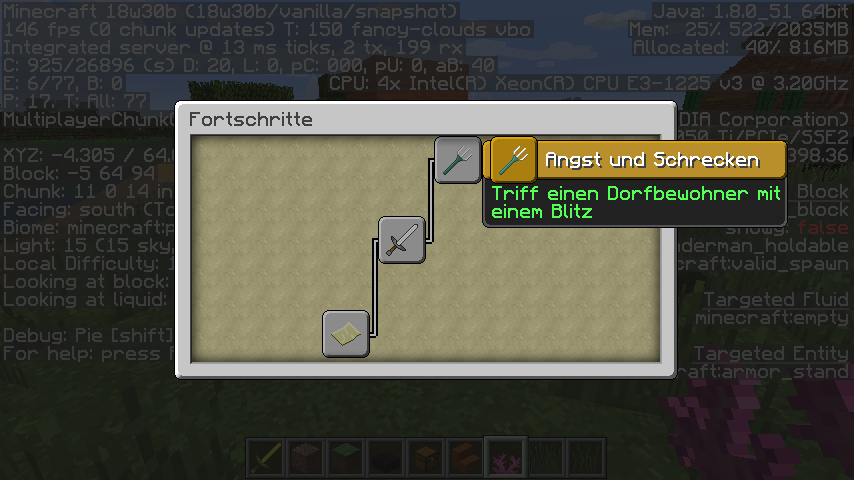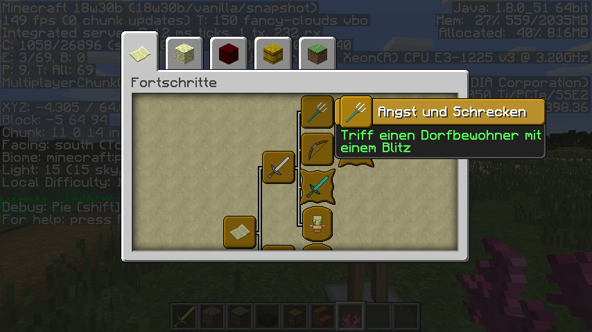 /advancement grant @s only minecraft:adventure/very_very_frightening-> See that the 'Very Very Frightening' is offset by quite a bit, instead of being directly after the root of the adventure tab.