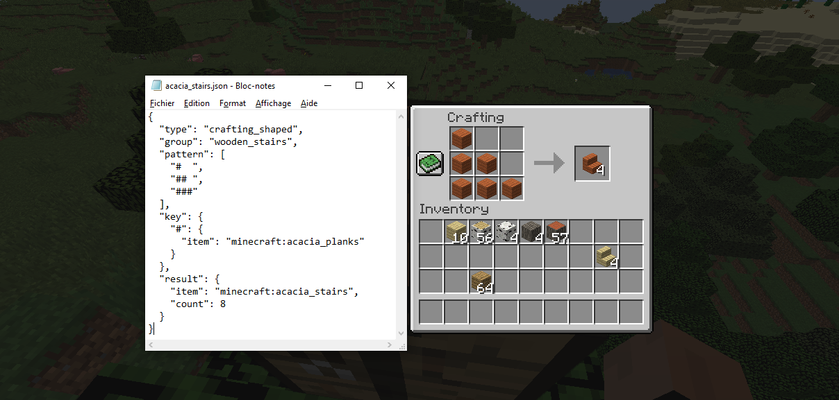if you want to change a recipe (ex: 4 barks crafted instead of 3) this doesn't work and will always craft the vanilla recipe unless you disable the vanilla datapack (which is not very handy if you just want to change one craft)
