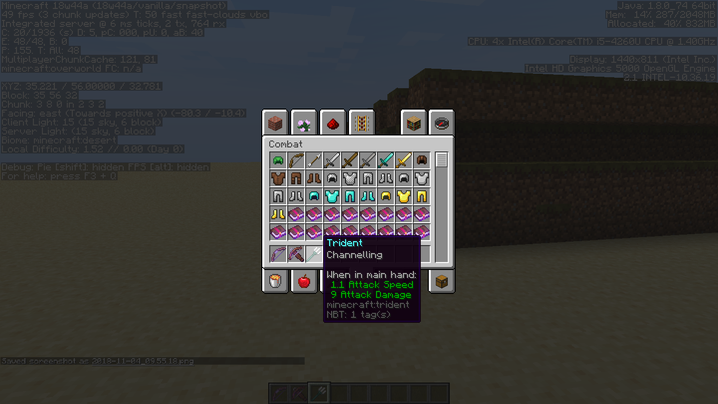 Minecraft 1.13-pre5, Minecraft 1.13.2, Minecraft 18w44a, Minecraft 19w08b