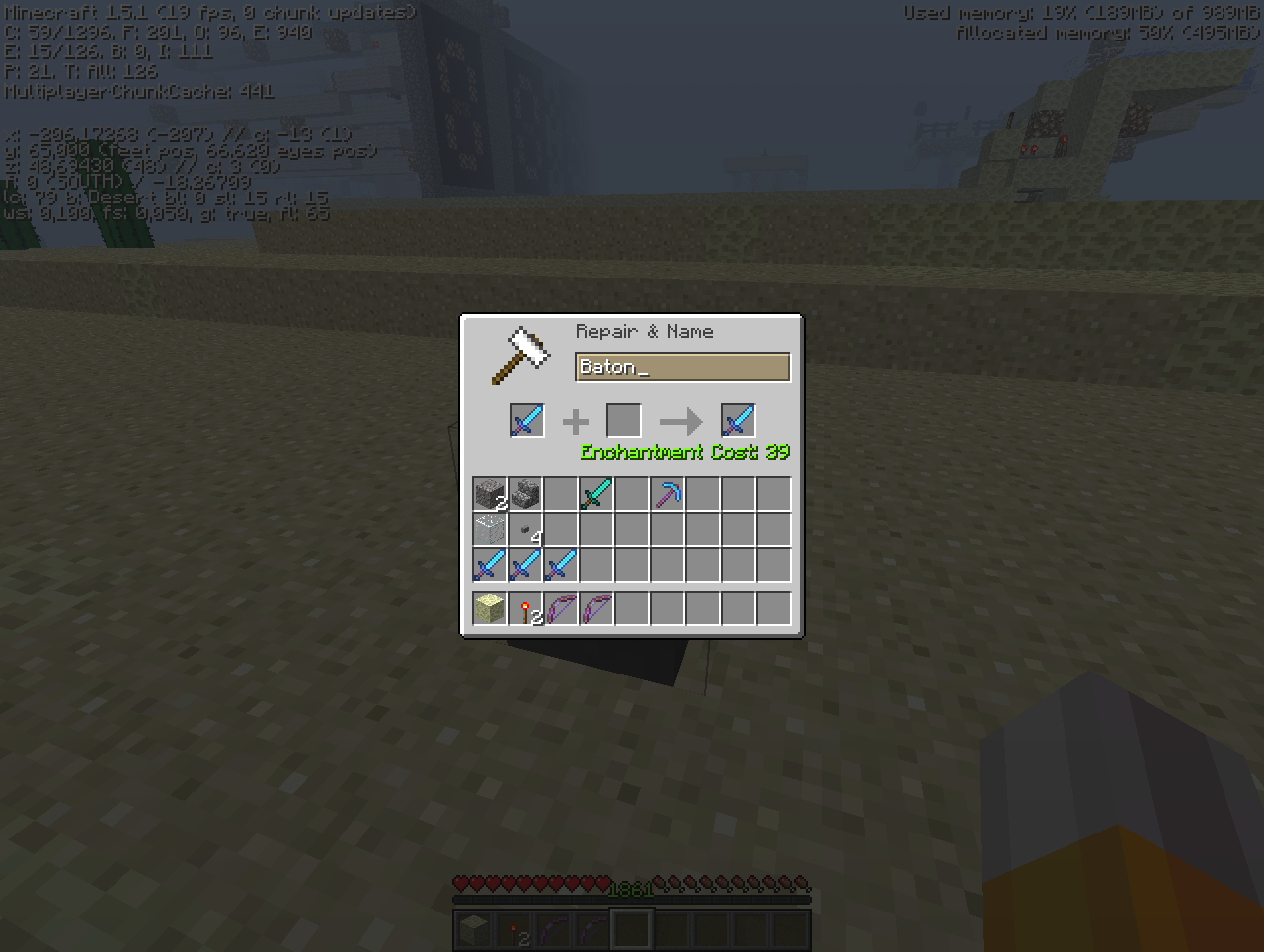 3. Put the enchanted sword into the first anvil slot, it will show "too expensive".