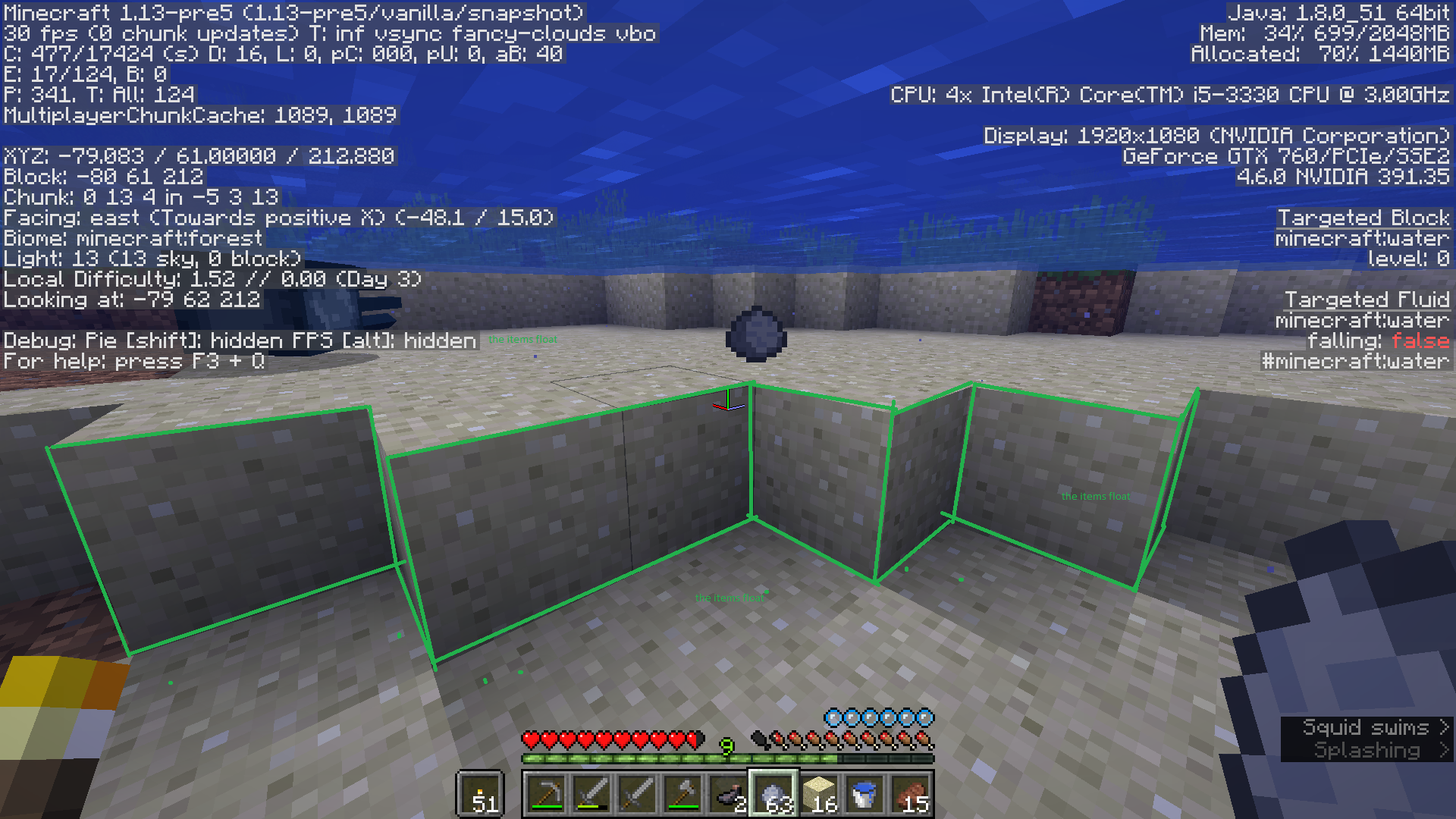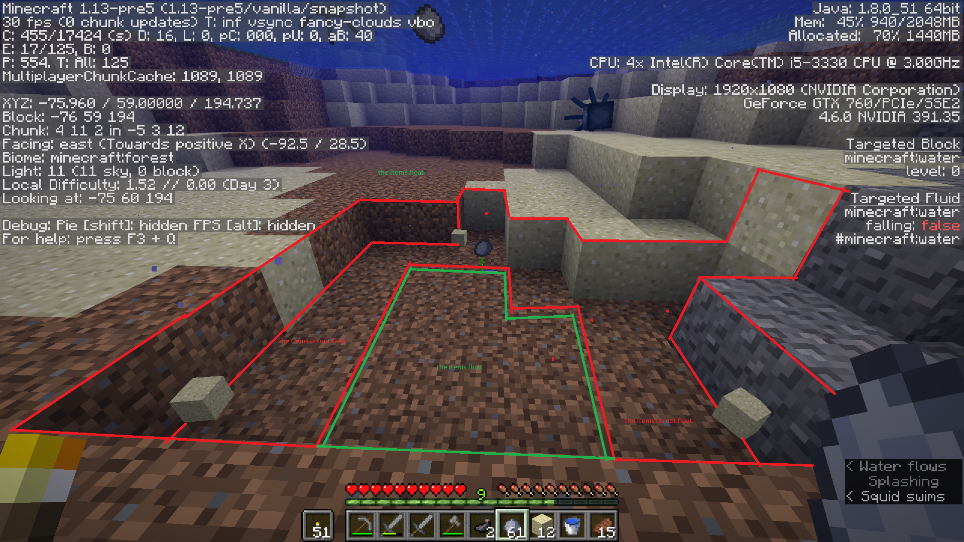 Well in a survival world that I have to test the performance, (that right now the FPS are limited to 60) and I started digging clay and I noticed that the uneven corners did not rise so that ... I started doing some tests and it came out that xD