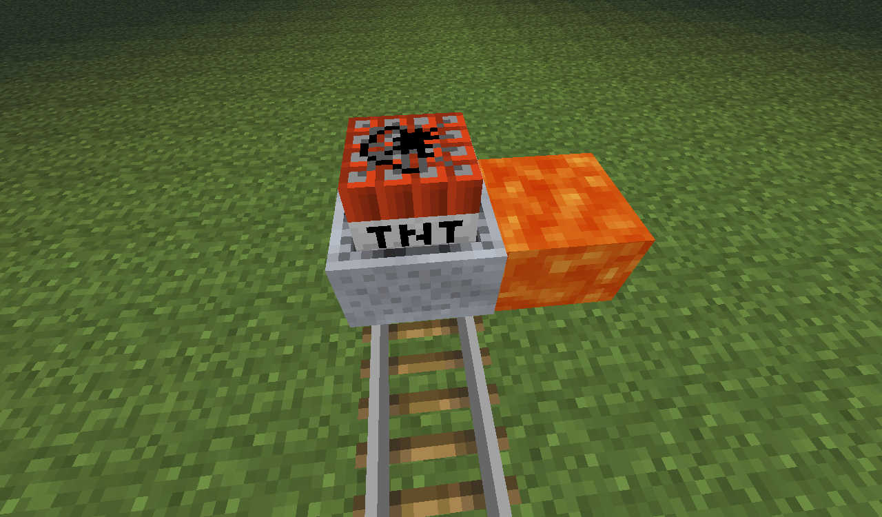 When a Minecart with TNT is on normal rails, and lava destroyed the rails, the Minecart with TNT explodes and drops TNT and a minecart. It is difficult to confirm because the Minecart and TNT burning sometimes.