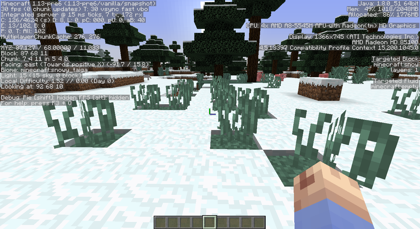 In a Snowy Taiga buffet world, Double Tall Grass and Double Tall Ferns both sometimes generate only the bottom block.