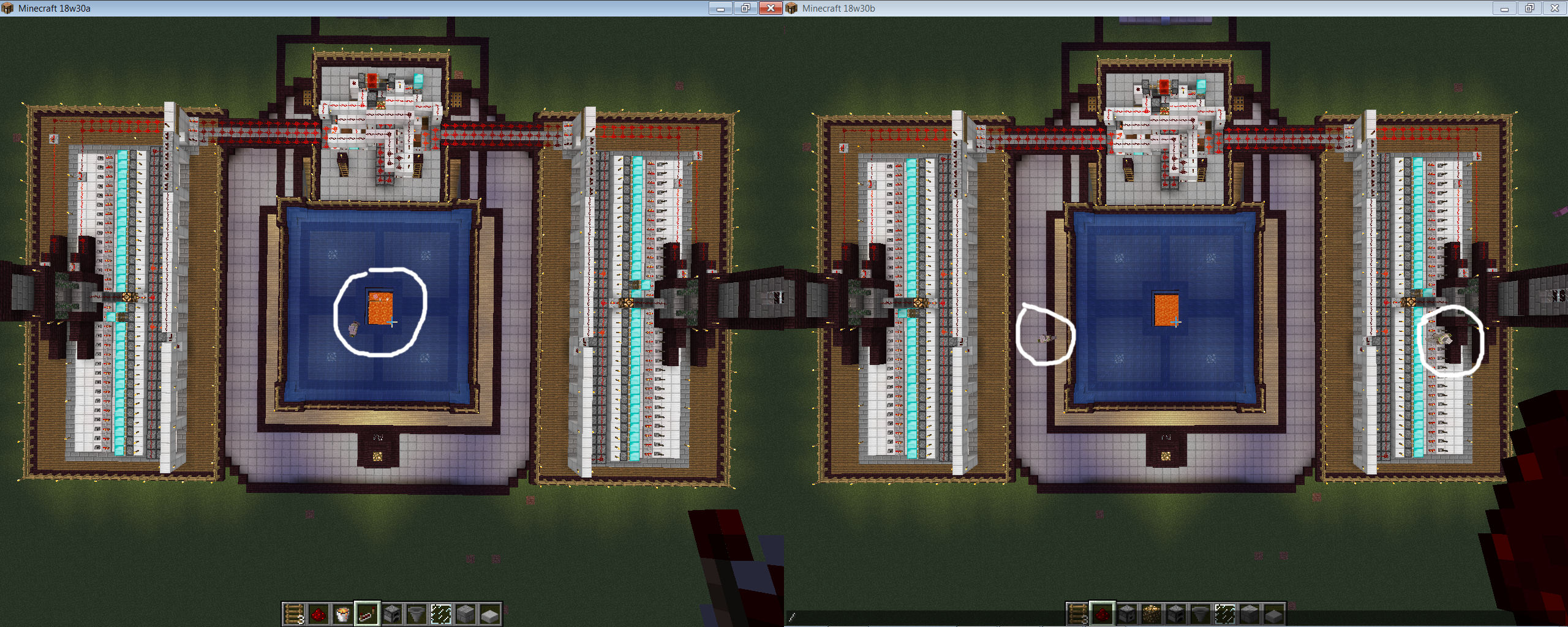 Left : 30a golems spawn in right place. Right :30b golems spawn again in wrong place.