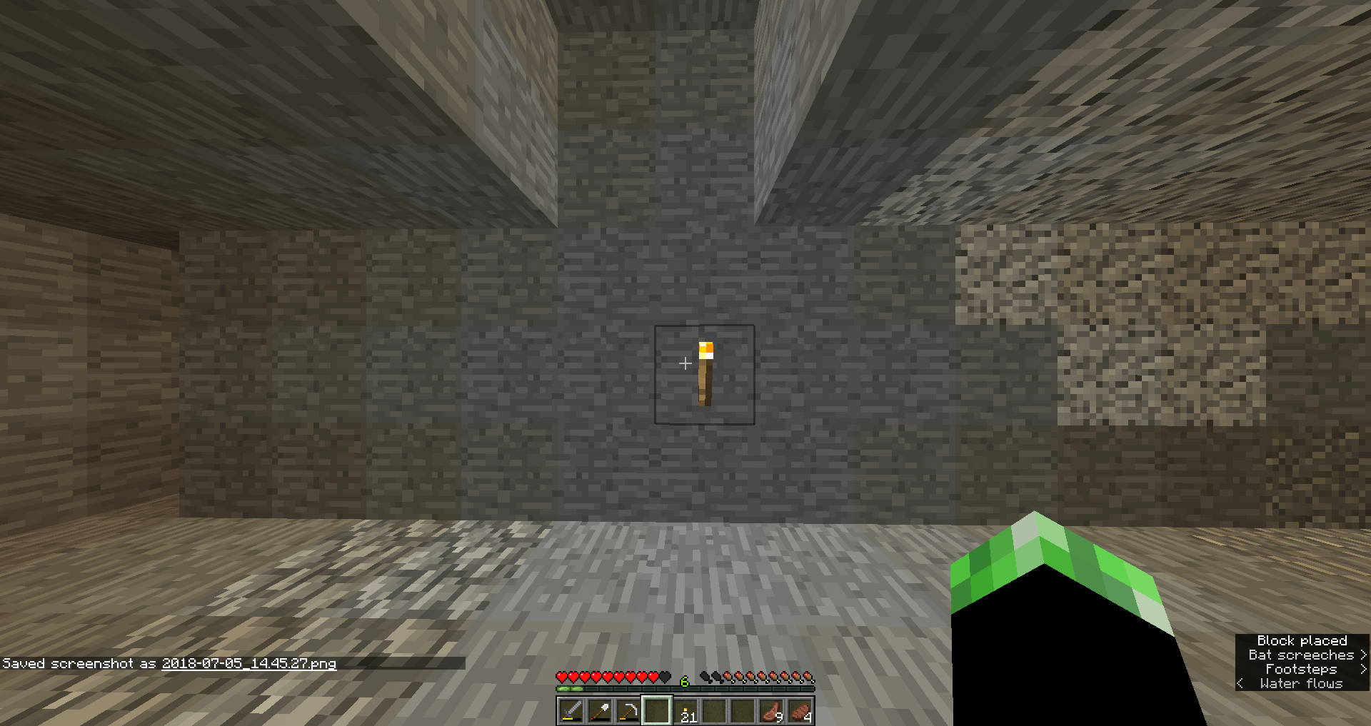 When we have our torch in left hand [F] and our right hand is empty we place a torch it removes it from our left hand it get placed and disappear after we do [F] it go back to our inventory, however this works only if our right hand is empty else it works.