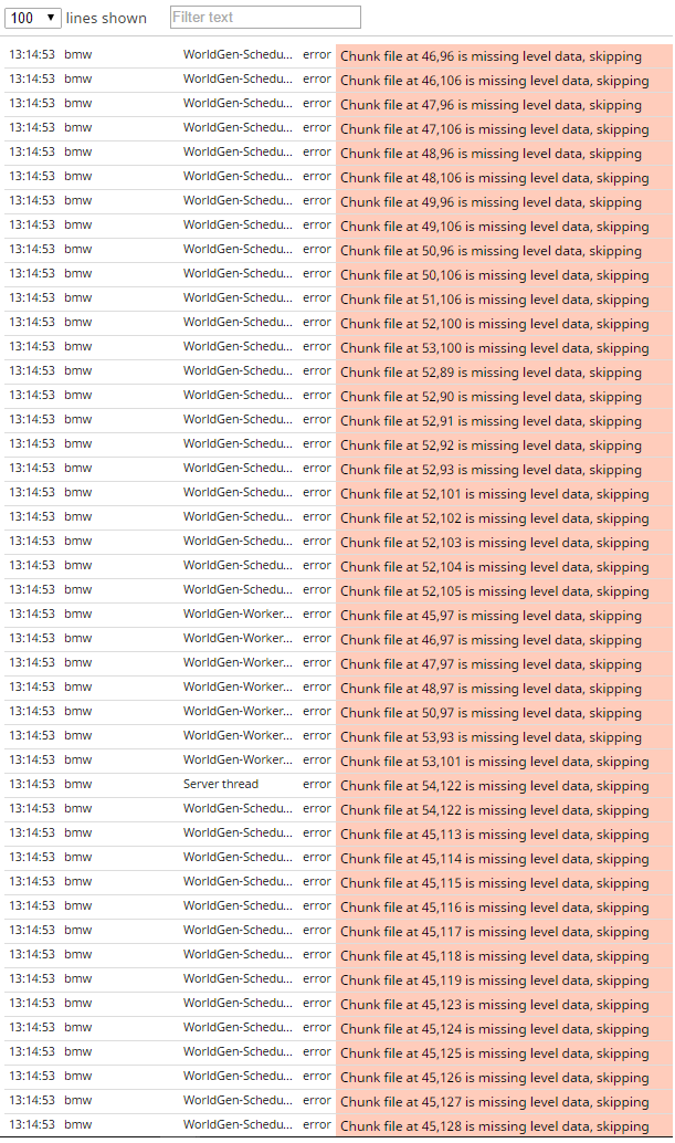 When loading a 1.12.2 world in snapshots 18w19 or newer some random chunks mutating to new chunks with the new 1.13-bioms and deleting all blocks and bioms that were there before. The minecraft game output says "Chunk file at xx,xx is missing level data, skipping" about 2000 times. but when the affected chunks are recently loaded in the version 1.12.2 by flying over it, the problem is not as bad as before.