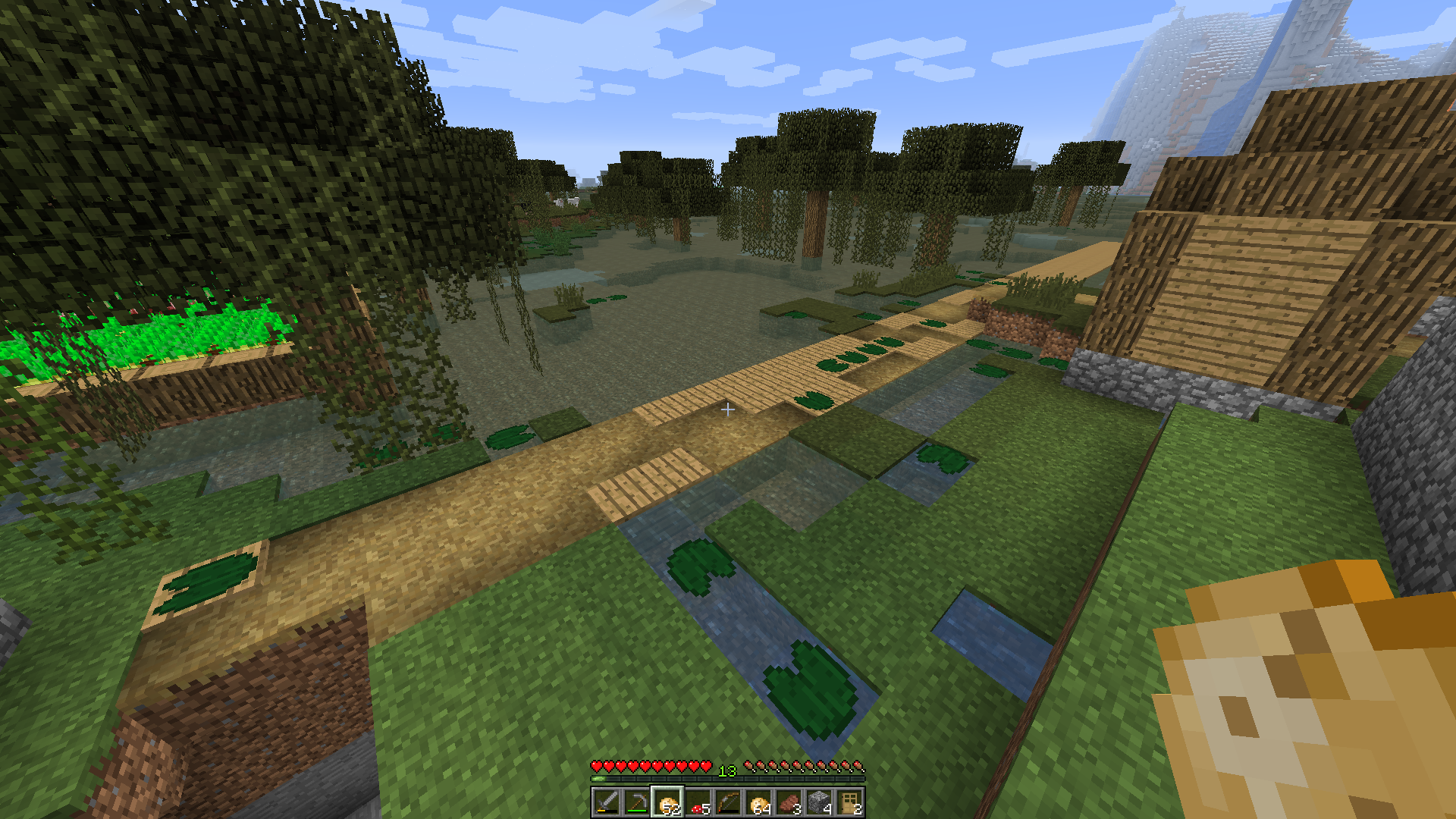 Lily pads generate on wooden planks from villages.
