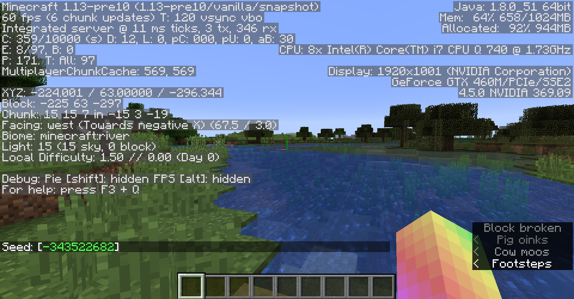 Cannot confirm in 1.13-pre10. The seed and coordinates are in my attached screenshot. The world was freshly created in 1.13-pre10.