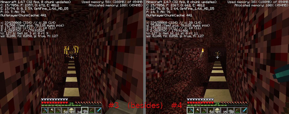 The screenshots were taken while using optifine, but I also checked vanilla: same thing. Also, it does not matter if the difficulty is set to easy, normal, or hard.