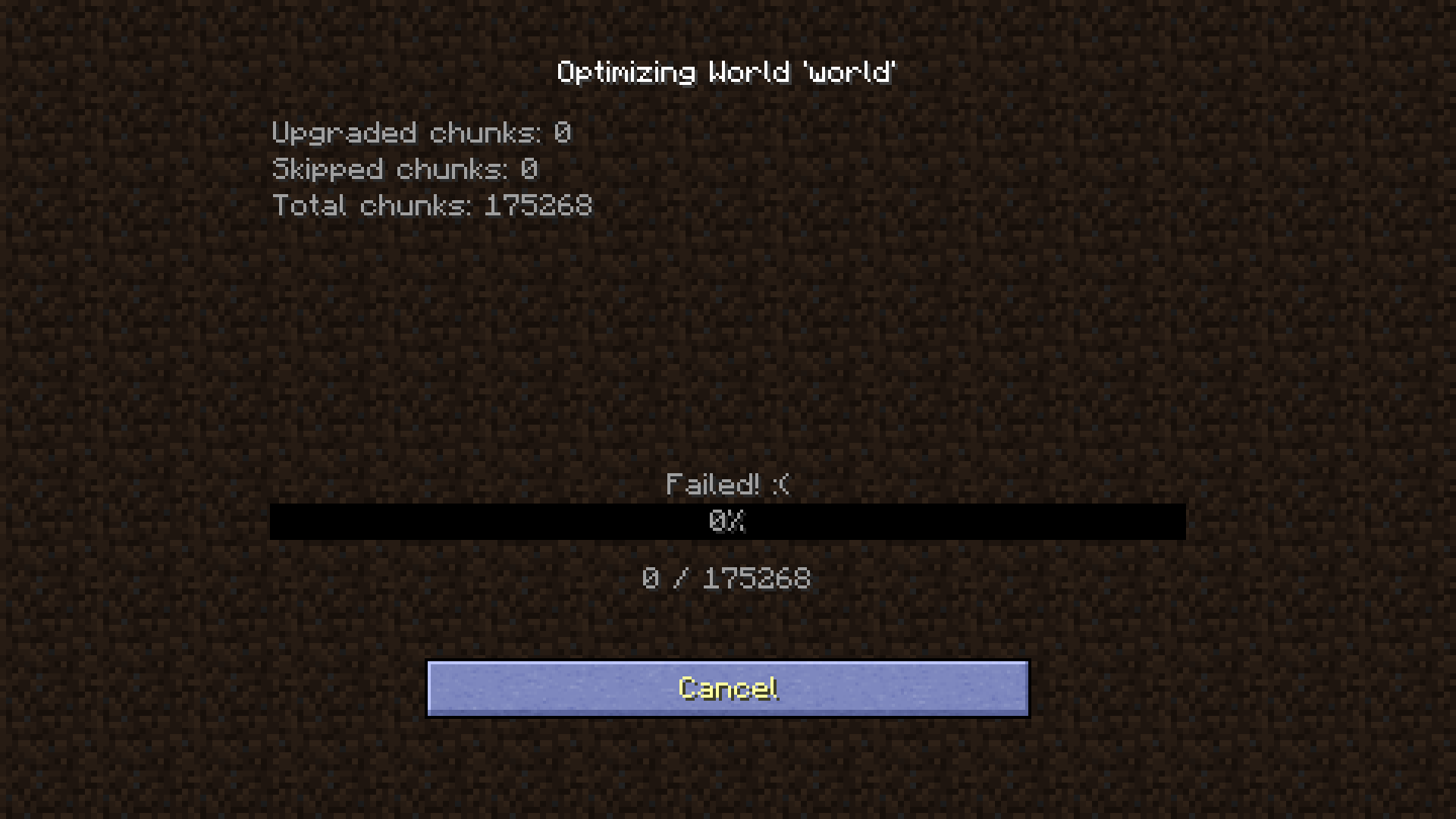 Trying to load world from 1.12.2 in 1.13 results generating new world with the same seed but from scratch, without any buildings I've made before. Optimizing world from single player tab isn't working too. World download: https://drive.google.com/open?id=147m1Quq7iXTYcvKZHkOpITNu17nf5CX2