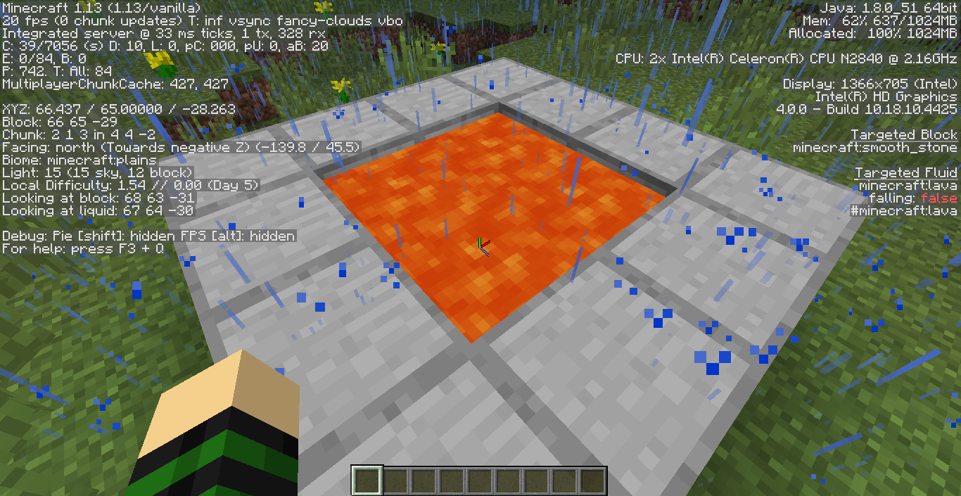 Rain splash particles appear below the surface of water and rain smoke particles no longer appear when lava is exposed to the sky when it is raining.