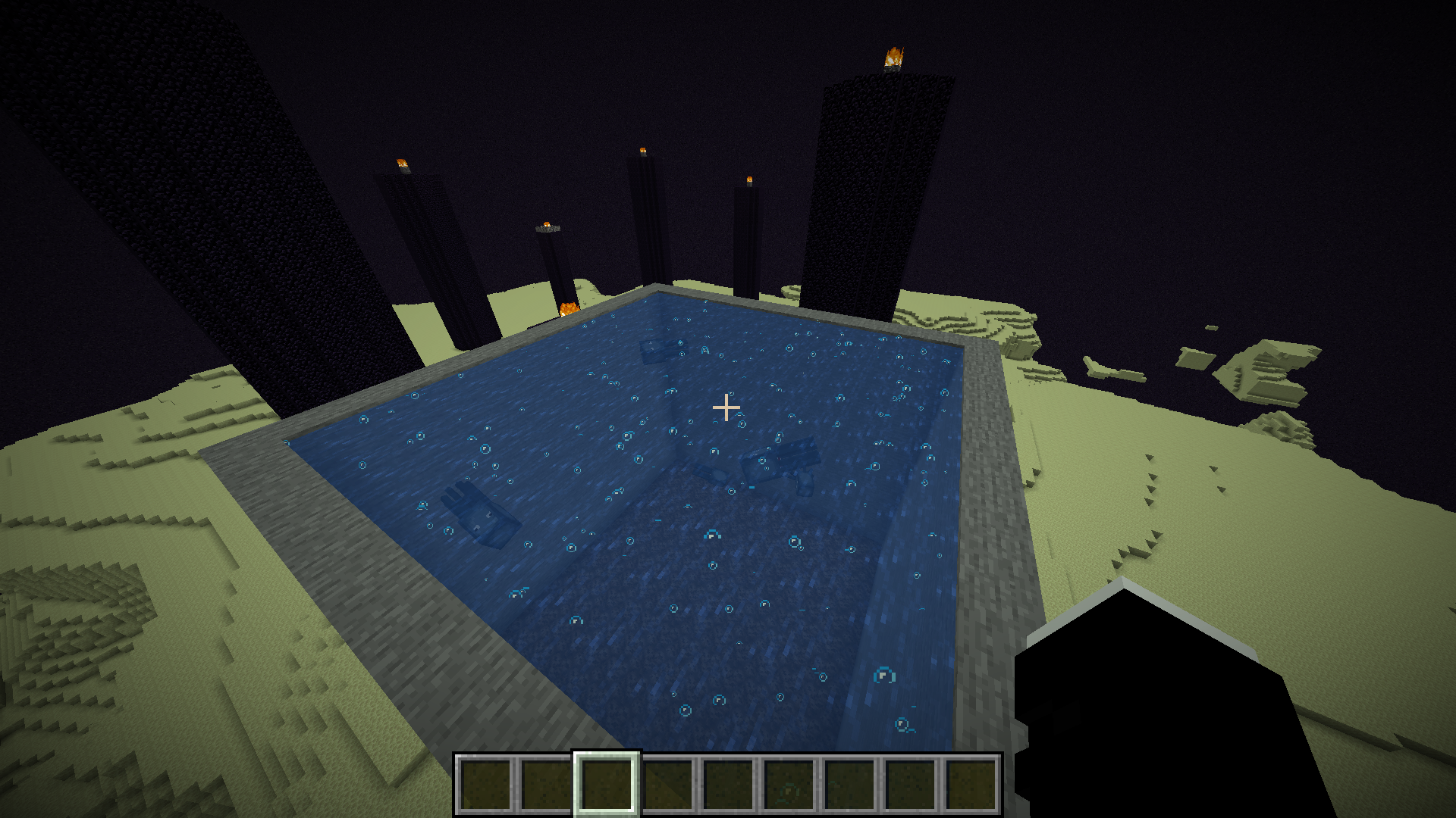 /fill ~7 ~-1 ~-7 ~-7 ~10 ~7 stone hollow /fill ~6 ~ ~-6 ~-6 ~10 ~6 water /fill ~6 ~-1 ~-6 ~-6 ~-1 ~6 minecraft:soul_sand /summon squid (summon like 5)→ ❌ Squids are bouncing up and down, some even fly out.