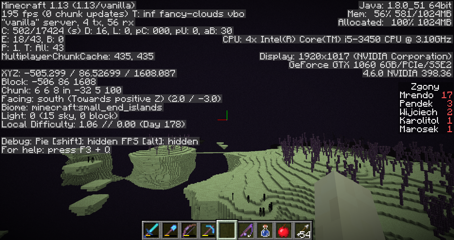 I attempted to attach a screen shot of the small piece of the glitched end city that I found, but I get an error message about a missing token from Jira when I try to do so.
