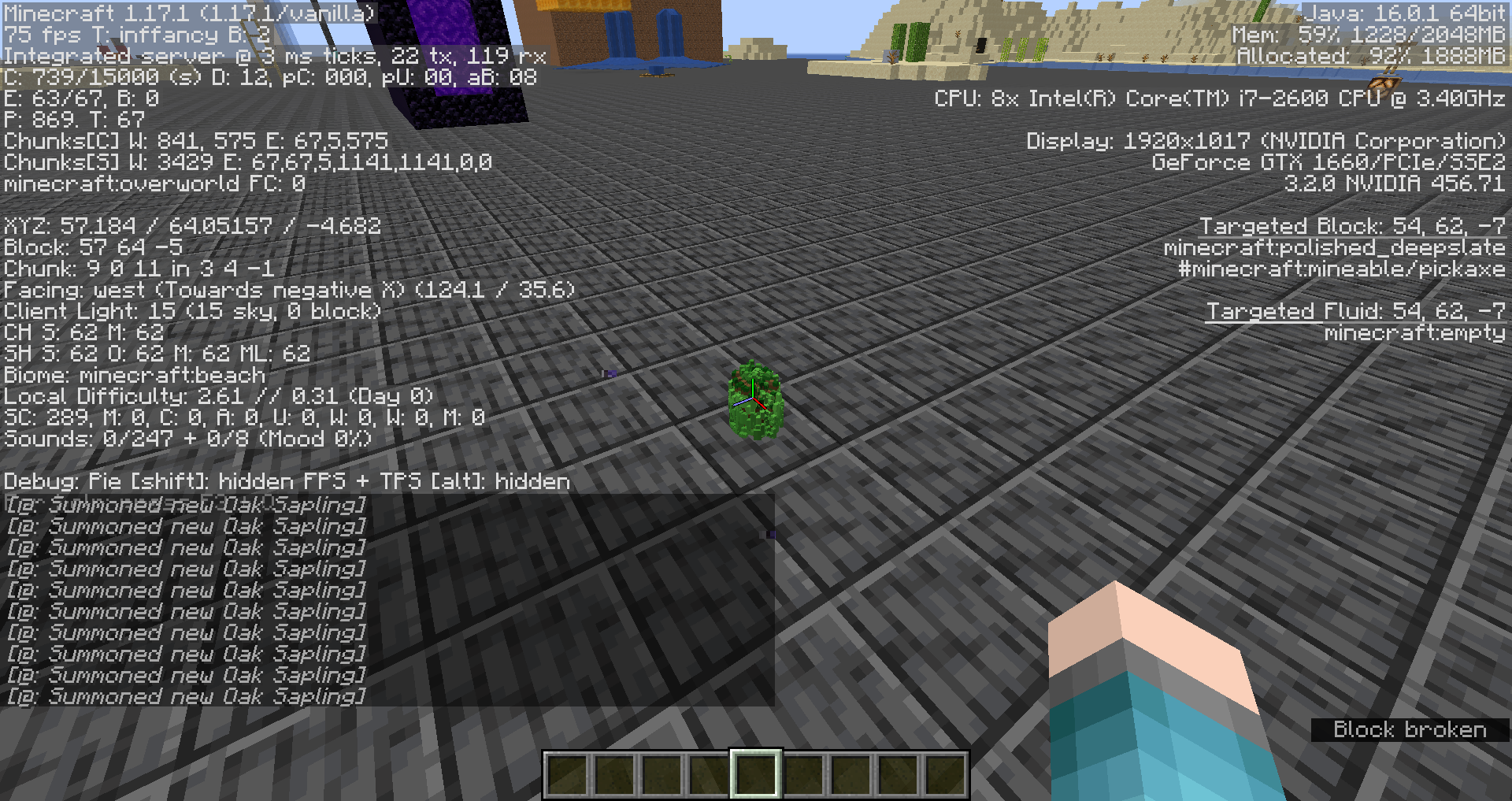 summon item ~ ~2 ~ {Age:-32768,Item:{id:"oak_sapling",Count:1b}}