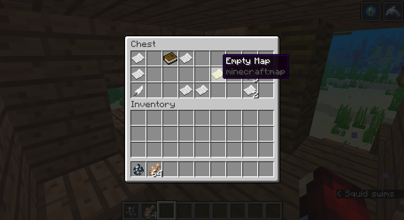 Map chests on shipwrecks contain an empty map instead of a filled treasure map when in a buffet world. I searched the wiki, and it said that every map chest on a ship will contain a treasure map (which I confirmed for myself in a normal single player world). I also know that the chests usually spawn on beaches, but can underwater.