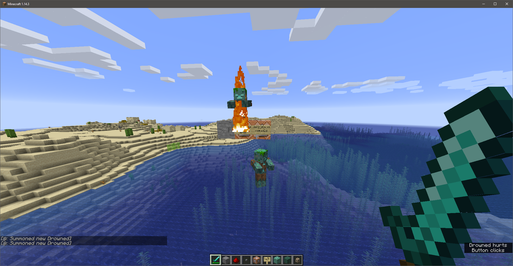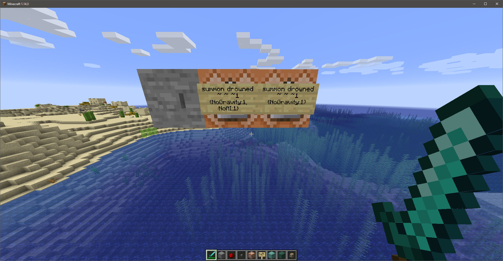 /summon minecraft:drowned ~ ~ ~ {NoGravity:1b}→ ❌ Notice the drowned slowly fall to the ground