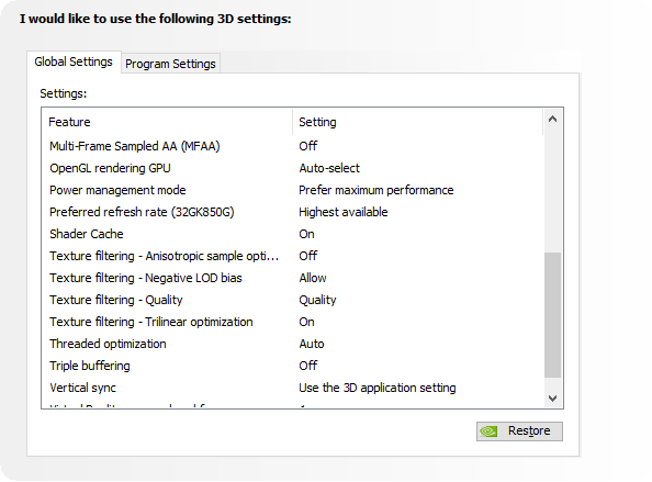 Results are identical to before (pixel bleed / stutter), this is with in-game VSYNC enabled.