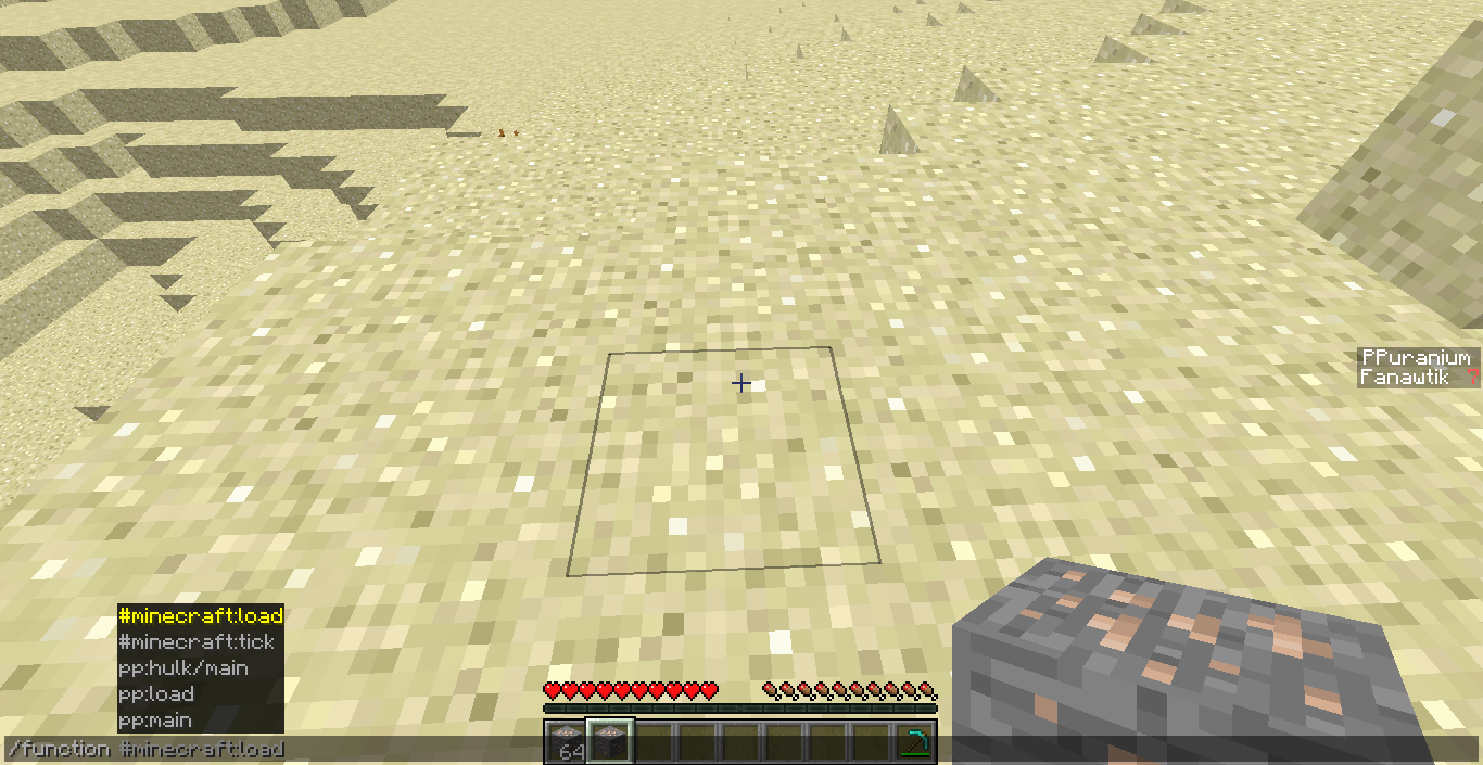 The example provided shows that despite there being the function "pp:hulk/uranium" in the loaded data pack, it will not load in the game. The function "pp:hulk/main" which is intended to activate this function cannot access it either.
