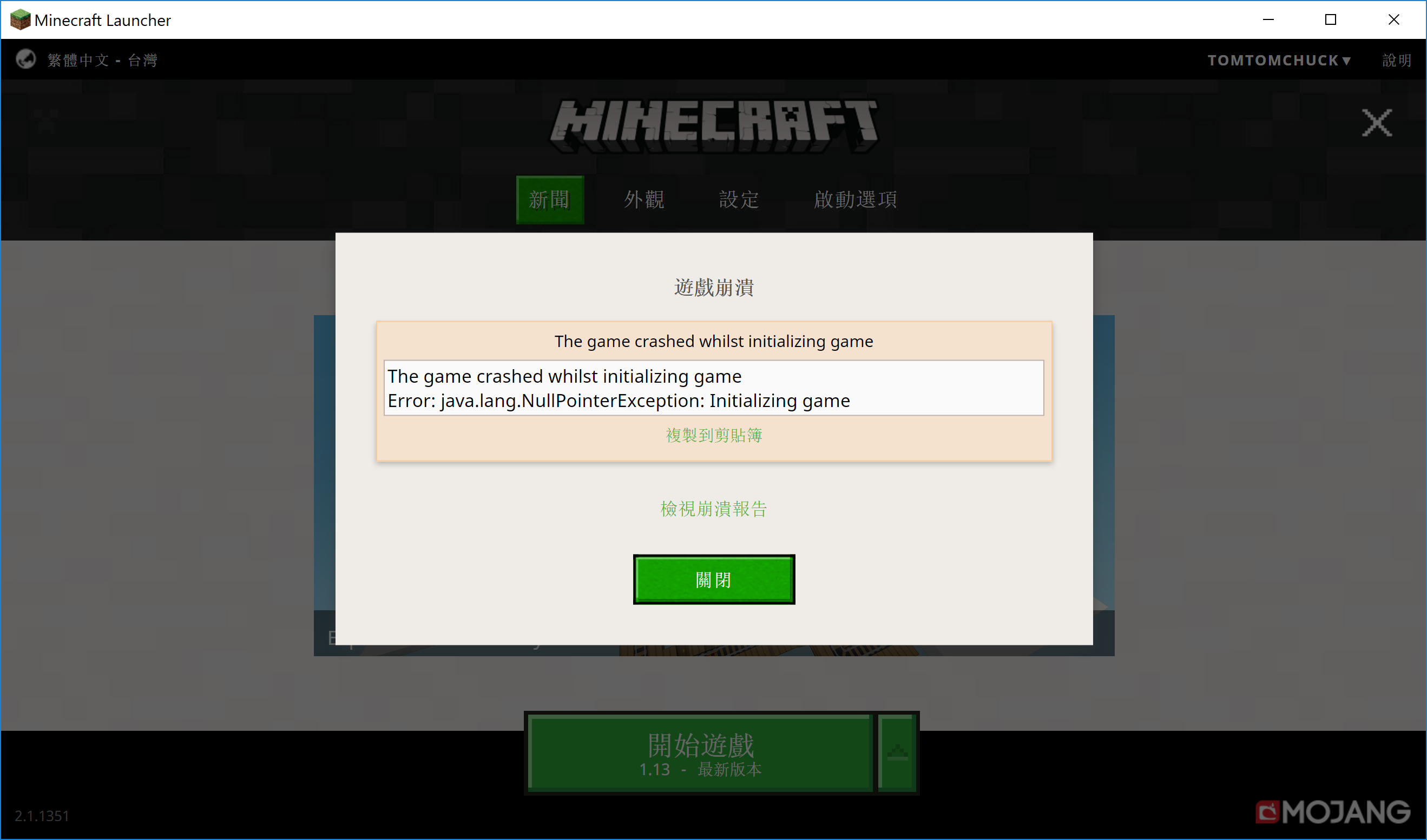 "The game crashed whilst initializing game
