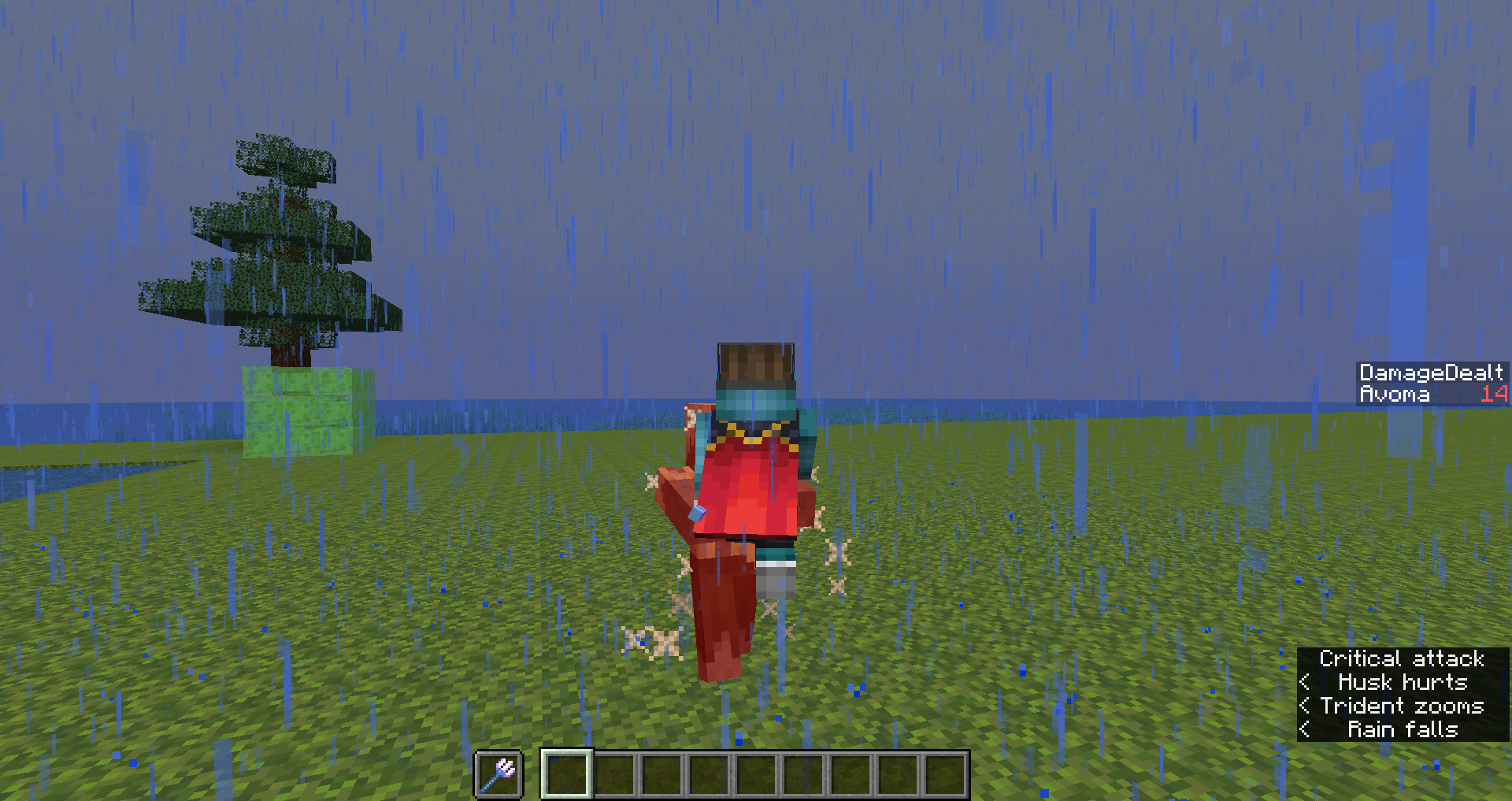 /scoreboard objectives add Damage minecraft.custom:minecraft.damage_dealt /scoreboard objectives setdisplay sidebar Damage /scoreboard players add @s Damage 0Get a trident with Riptide I and spawn an entity